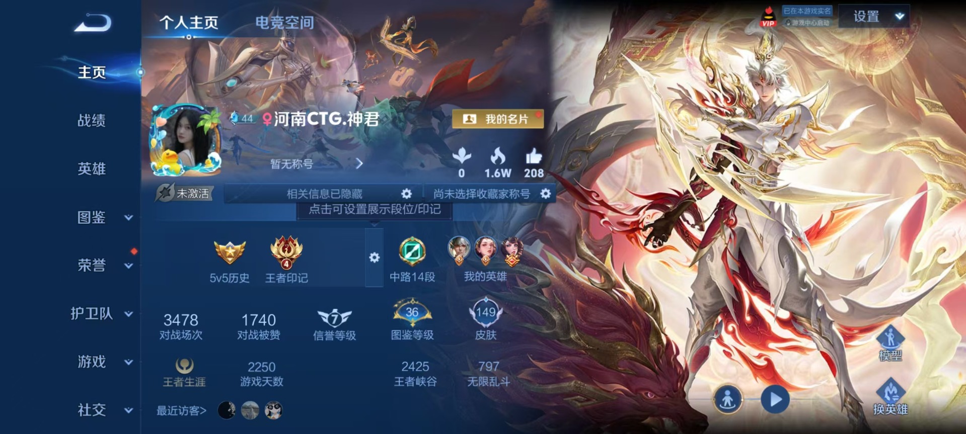 - [12314512]V8 3典藏 2珍品传说 15传说 125英雄 300皮肤 可修改实名 优质装备:鸣剑·曳影,九霄神辉(木兰典藏),最初的交响(伽罗典藏),怪盗基德,绛天战甲(鸡嘴战神),黄金白羊座,久胜战神,一念神魔,仲夏夜之梦(大飞蛾),地狱之眼,山海·炽霜斩(李信年限),山海·苍雷引(电光曜子),浮生妄,澜逐花归海,涂山容容 珍品传说:时之奇旅-孙策 传说皮:落雪白狼,铠冥王哈迪斯 珍宝阁皮:优雅恋人,女武神 限定皮:愿照·九州拓(澜年限),逐霄战戟,鸣野蒿,五谷丰年,李小龙,山海·玄木吟(马可年限) 史诗皮:器灵·浮梦炉,化蝶舞,星界战将,龙之律动,石田雨龙,怒海争锋,破空之剑,战舞者,蒙犽顽岩魄,琥珀纪元伽罗,蔬乡物语(鲁班七号),超元猎域,百相守梦-黄忠,织梦人,紫霞仙子,苍穹之光,电玩小子(小书包),白龙吟,黄金分割率,特工魅影,千年之狐,江河有灵,匿光侦查者,魅语,百解令(蒙犽),高渐离燃音魔法,蒙恬荣光圣徽,无限星赏官,匿光破解者,冰冠公主,白蛇,晚萤,电玩·爆裂旋风,暗夜猫娘,末日机甲-吕布,猫狗日记-孙策,乱世虎臣,节奏热浪,修罗,摇滚巨星,水果甜心,绅士熊喵,天才门将,星夜王子,心灵骇客,功夫厨神,德古拉伯爵,暗隐猎兽者,幽灵船长,鬼剑武藏,心灵战警,舞动绿茵,地狱岩魂,纤云弄巧,拒霜思,缤纷独角兽,乘风破浪,逐浪之夏,龙鼓争鸣,月团寄思,水晶猎龙者,箭羽风息,金属风暴,圣诞狂欢,圣诞恋歌,鹰眼统帅,暗夜贵公子,魅力维加斯,黎明之约,赏金猎手,奇遇舞章,无心,未来纪元-赵云