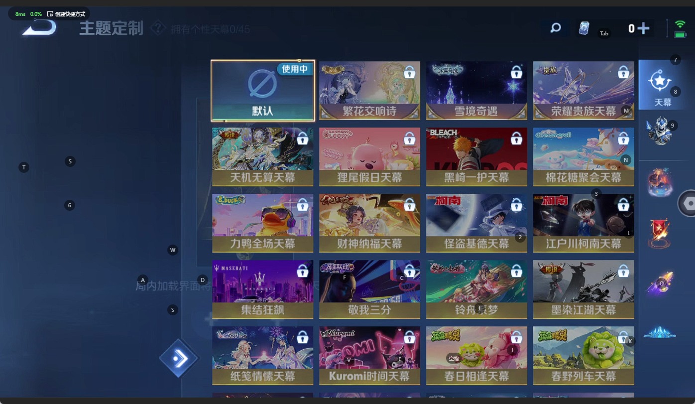 高渐离燃音魔法,夏侯惇乘风破浪,阿轲节奏热浪,铠曙光守护者,曹操幽灵船长,小乔缤纷独角兽,小乔青蛇,孙尚香时之恋人,鲁班七号电玩小子,吕布末日机甲,刘禅电玩·爆裂旋风,宫本武藏鬼剑武藏,兰陵王暗隐猎兽者,貂蝉圣诞恋歌,白起星夜王子,嬴政摇滚巨星,程咬金功夫厨神,百里玄策原初追逐者,雅典娜冰冠公主,雅典娜黎明之约,李元芳逐浪之夏,墨子金属风暴