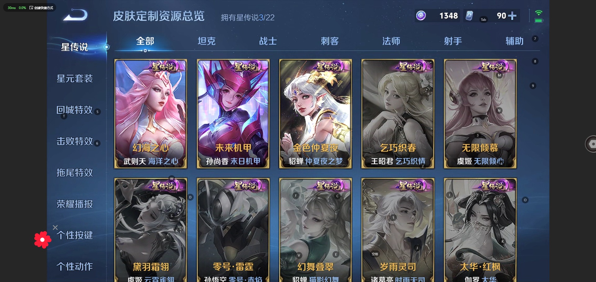 刘备时之恋人,铠冥王哈迪斯,赵云淬星耀世,干将莫邪久胜战神,典韦战鼓燎原,孙策乘龙·淬吴钩,达摩黄金狮子座,庄周牧神诗旅,貂蝉猫影幻舞,张良黄金白羊座,孙悟空零号·赤焰,曜云鹰飞将,墨子黄金天蝎座,云缨幻光神枪