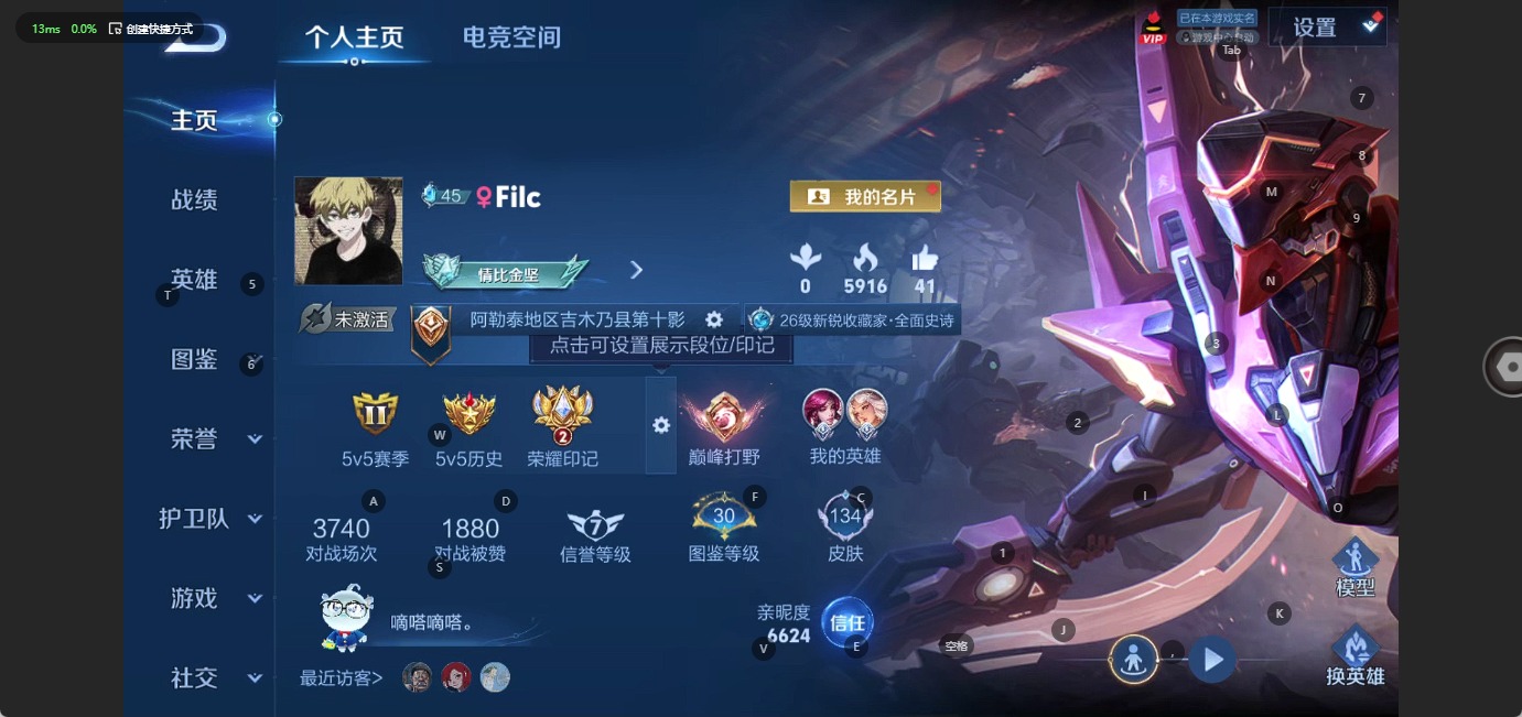 - PX_2111117-实名: 可修改 贵族等级: V4 英雄数: 66 皮肤数: 41 限定皮: 鸣野蒿,愿照·福禄聚