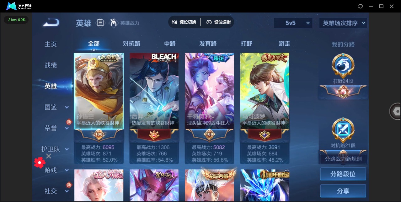 - PX_2089846-实名: 可修改 贵族等级: V5 英雄数: 67 皮肤数: 52 传说皮: 久胜战神,浮生妄,幻光神枪,云诺千山 限定皮: 愿照·山河定,愿照·九州拓
