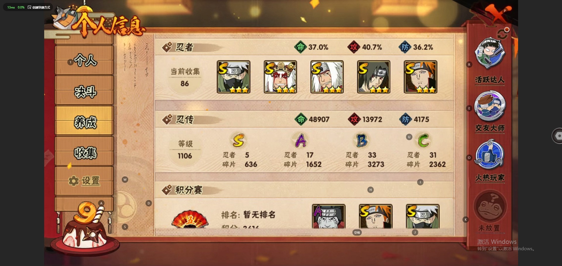 [11602530]v0 5S忍 17A忍 12通灵 501.1W战力 可二次 可修改实名 优质装备:旗木卡卡西「须佐能乎」,自来也 「传说中的三忍」 S级忍者:自来也 「舞之豪杰」,宇智波鼬 「须佐能乎」,佩恩「天道」