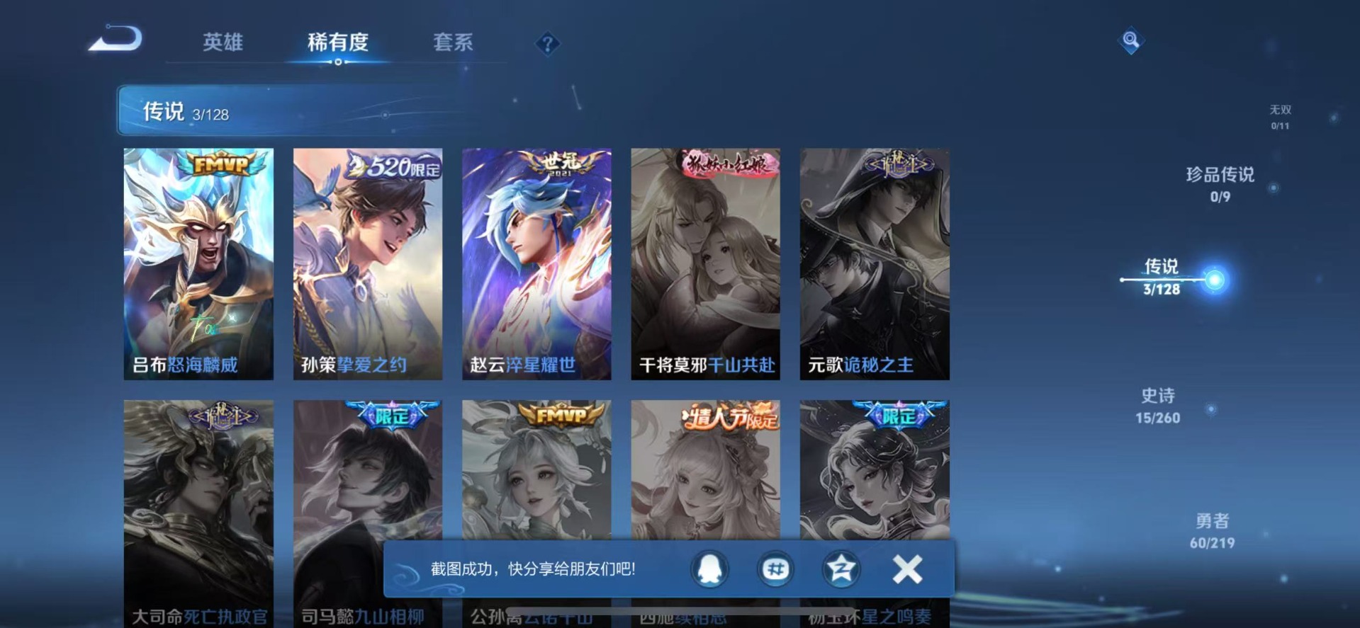 - PX_2068214-25 安卓QQ/永恒钻石/211皮肤/123英雄/1典藏/0珍品无双/0无双/0珍品传说/10传说/57史诗/8稀有英雄 【1 典藏皮肤】拾光映像 瑶, 【10 传说皮肤】前尘镜 娜可露露,无双飞将 马超,游龙清影 西施,仲夏夜之梦 貂蝉,武陵仙君 诸葛亮,炽阳神光 镜,启示之音 露娜,山海·炽霜斩 李信,淬星耀世 赵云,鸣野蒿 桑启, 【57 史诗皮肤】龙鼓争鸣 蒙犽,乒乒