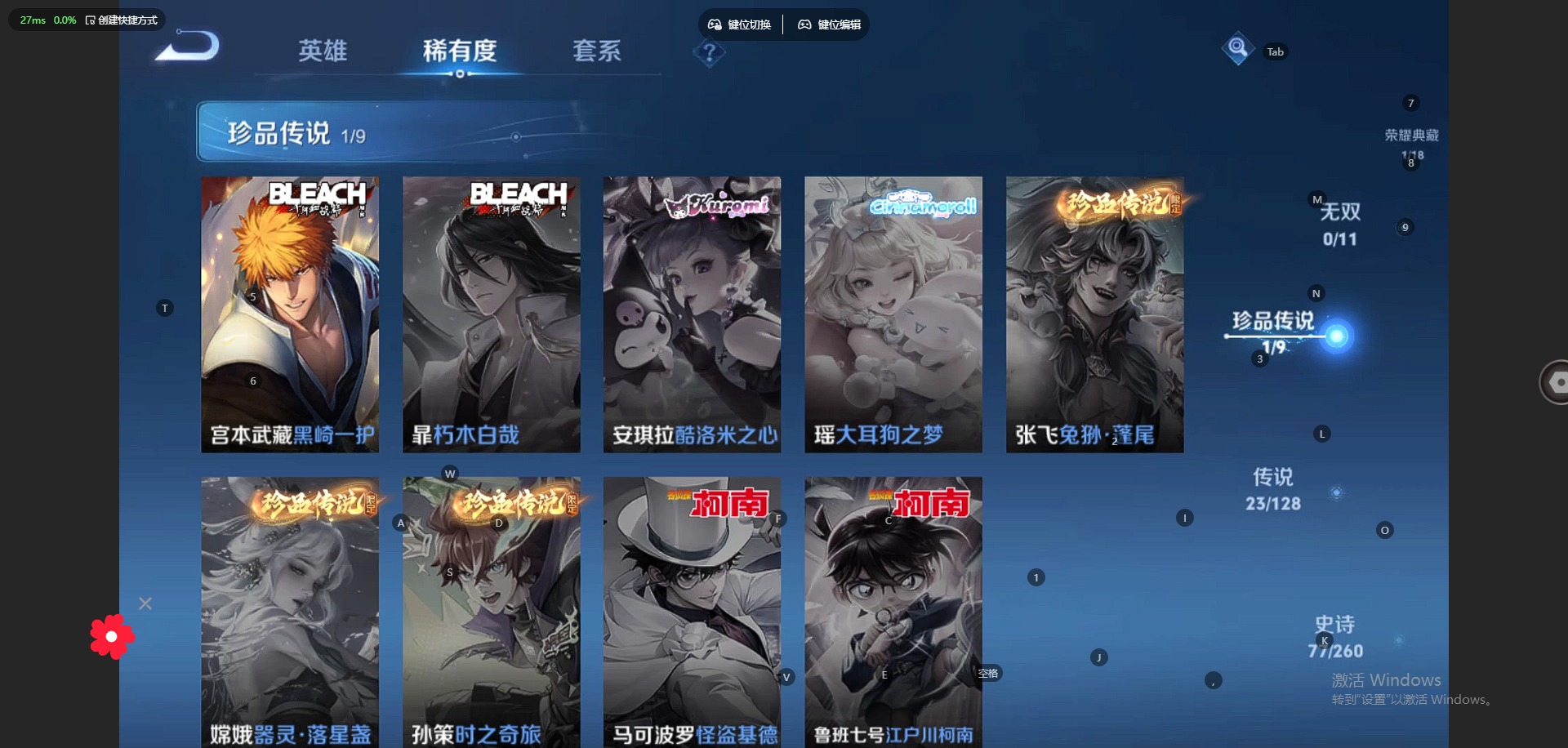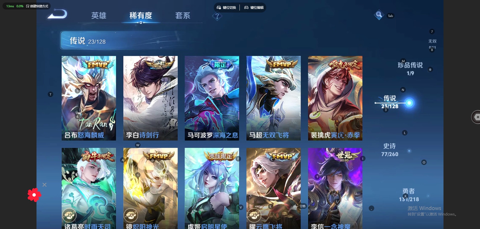 - [11883544]V7 1典藏 1珍品传说 7传说 123英雄 208皮肤 可修改实名 优质装备:神鉴启示录,怪盗基德,炽阳神光,末日机甲-孙尚香(绿蚂蚱),超时空战士-狄仁杰,无双飞将,记忆之芯(机甲兔) 珍宝阁皮:妄想食味 限定皮:逐霄战戟,陌上桑,鸣野蒿,李小龙,寅虎·赤拳(老虎年限) 史诗皮:化蝶舞,星界战将,谪仙醉月,龙之律动,石田雨龙,茶境仙,怒海争锋,炽弈燎原,破空之剑,东方月初,埋骨钱,百相守梦-百里守约,百相守梦-黄忠,紫霞仙子,千年之狐,江河有灵,百解令(蒙犽),蒙恬荣光圣徽,无限星赏官,冰冠公主,偶像歌手,白蛇,猫狗日记-孙策,乱世虎臣,修罗,女仆咖啡,摇滚巨星,水果甜心,星夜王子,德古拉伯爵,幽灵船长,鬼剑武藏,天秀·启明,纤云弄巧,缤纷独角兽,乘风破浪,逐浪之夏,月团寄思,水晶猎龙者,曙光守护者,箭羽风息,原初追逐者,圣诞恋歌,鹰眼统帅,王者之锤,魅力维加斯,黎明之约