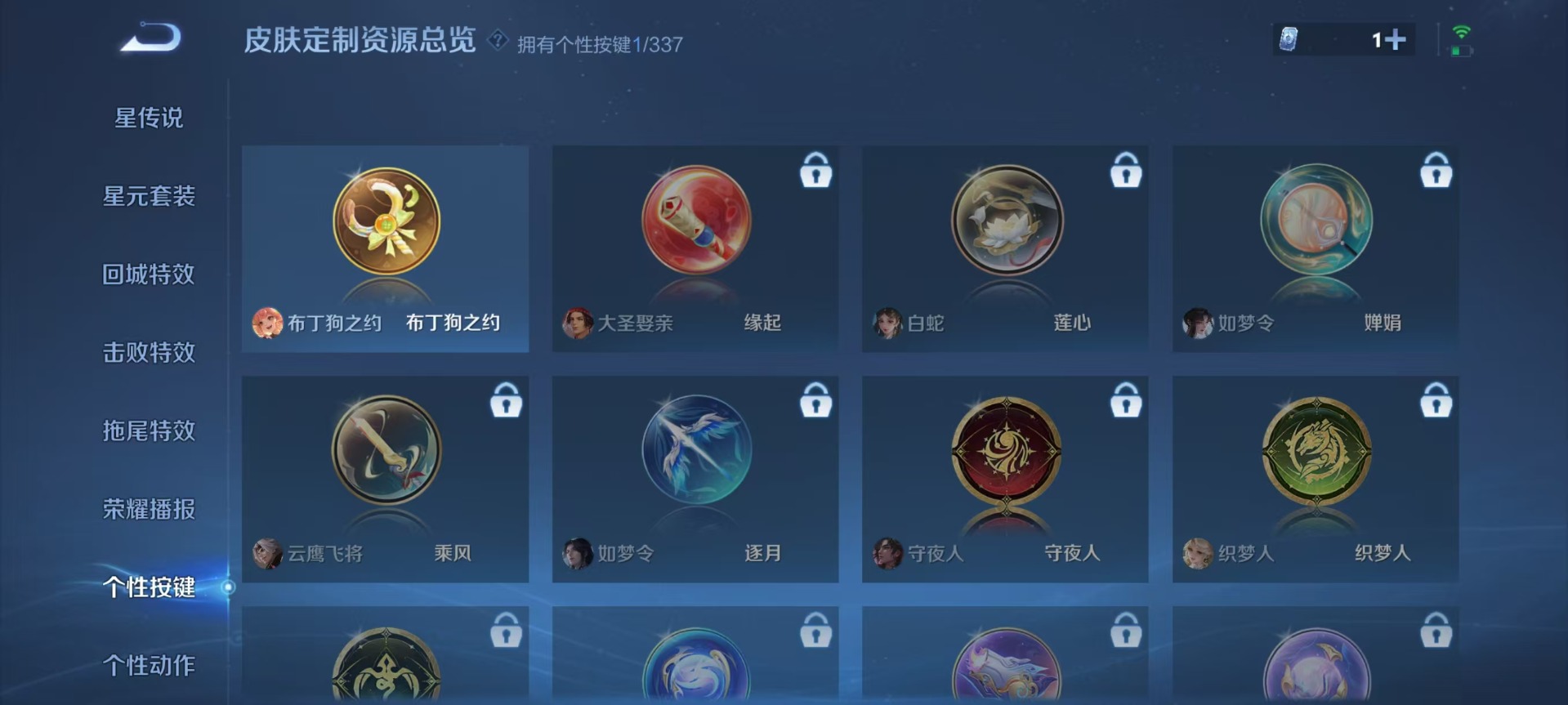 刘邦夺宝奇兵,夏侯惇朔风刀,老夫子醍醐杖,沈梦溪星空之诺,沈梦溪大漠名商,盾山御銮,苏烈千军破阵,典韦蓝屏警告,达摩沙漠行僧,牛魔御旌,鲁班七号狮舞东方,元歌云间偶戏,兰陵王金庭之子,裴擒虎擒涛扼浪,鲁班大师探海日志,明世隐疑决卦,鬼谷子原初探秘者,张良古海寻踪,女娲朔望之晖,桑启海盐诗旅,狄仁杰万华元夜,程咬金演武夺筹,李元芳银河之约,李元芳云中旅人,弈星混沌棋,米莱狄御霄,钟馗神迹守卫,钟馗驱傩正仪,狂铁御狮