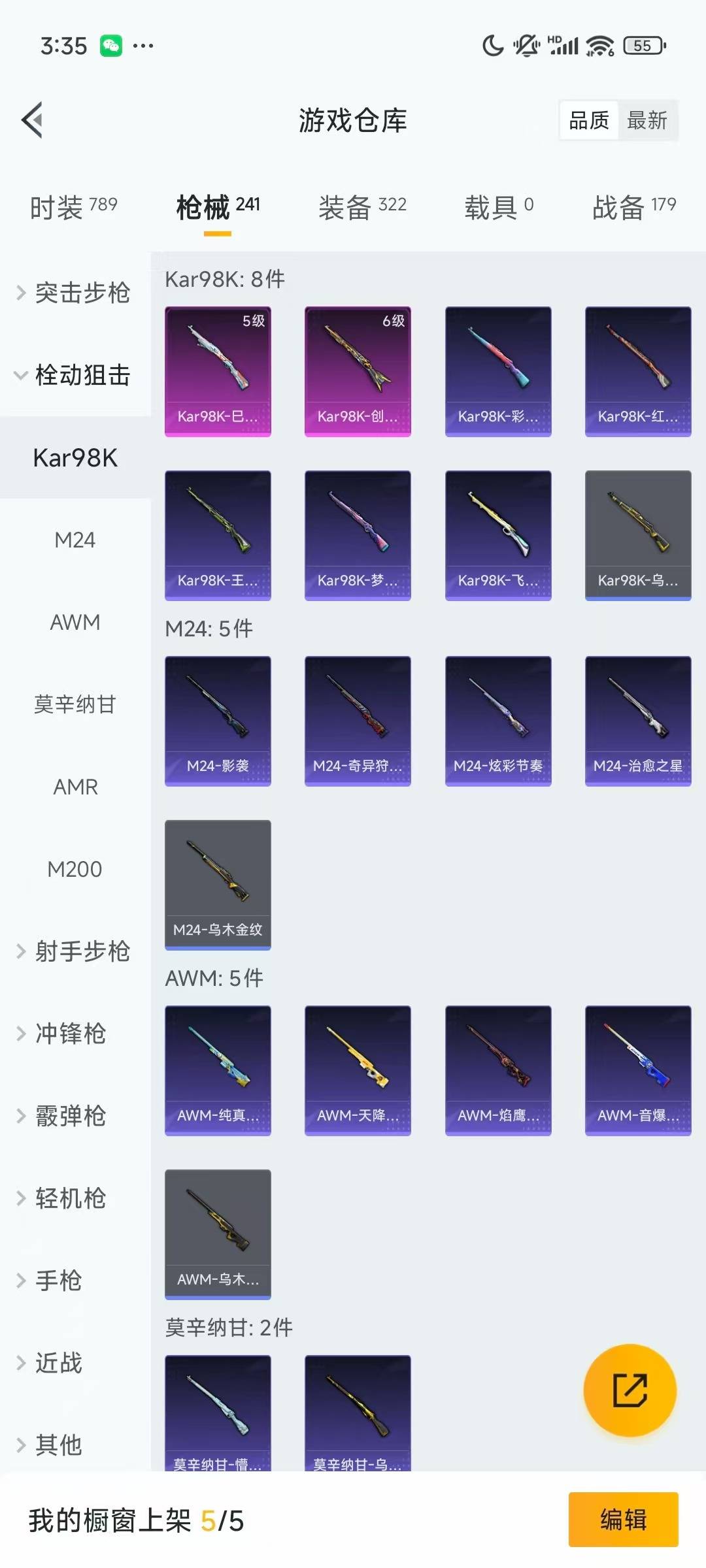 M416-五爪金龙,AUG-暖羊咩咩,Kar98K-巳巳如意,Kar98K-创世·救赎