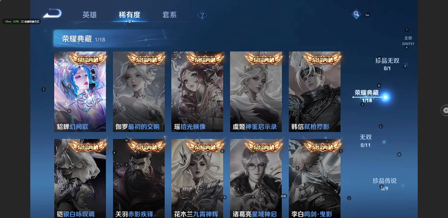 - [12088472]V7 2珍品传说 8传说 126英雄 274皮肤 典藏英雄武则天 可修改实名 优质装备:怪盗基德,黄金狮子座,黄金白羊座,炽阳神光,乞巧织情,百相守梦(张飞),灼幽烈阳,牧神诗旅 珍品传说:兔狲·蓬尾 珍宝阁皮:万物之道,优雅恋人 限定皮:鸣野蒿,玄嵩(庄周年限),山海·碧波行(瑶年限),高山流水,降魔,五谷丰年,虎魄,奔雷神使(牛魔年限),云端筑梦师,山海·玄木吟(马可年限) 史诗皮:鸭鸭历险记-刘禅,化蝶舞,星界战将,龙之律动,小牛鸭,百相守梦-周瑜,茶境仙,蒙犽顽岩魄,百相守梦-百里守约,百相守梦-黄忠,特工魅影,电玩·爆裂旋风,江河有灵,百解令(蒙犽),蒙恬荣光圣徽,冰冠公主,末日机甲-吕布,猫狗日记-大乔,时之恋人-孙尚香,乱世虎臣,节奏热浪,女仆咖啡,水果甜心,绅士熊喵,天才门将,星夜王子,德古拉伯爵,幽灵船长,鬼剑武藏,心灵战警,乐园奇幻夜,天秀·启明,地狱岩魂,纤云弄巧,拒霜思,缤纷独角兽,金属风暴,原初追逐者,圣诞狂欢,圣诞恋歌,鹰眼统帅,暗夜贵公子,魅力维加斯,黎明之约,无心,未来纪元-赵云