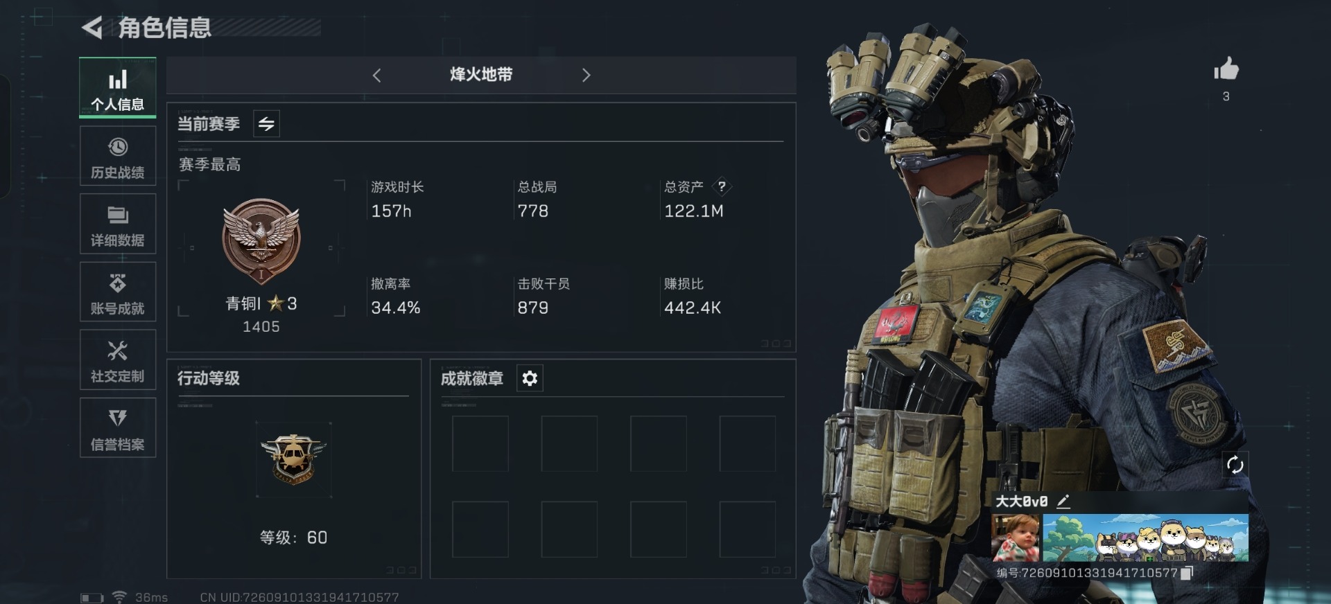 [11603683]总资产:122.1 2传说枪械 进阶安全箱(9.17到期) 可二次 可修改实名 烽火地带段位:青铜 全面战场段位:无段位 哈夫币:62.617 传说武器皮肤:复合弓-黑-天际线,CAR-15突击步枪-阿米娅 史诗武器皮肤:PKM通用机枪-蝮蛇,SV-98狙击步枪-囚徒,沙漠之鹰-曙光