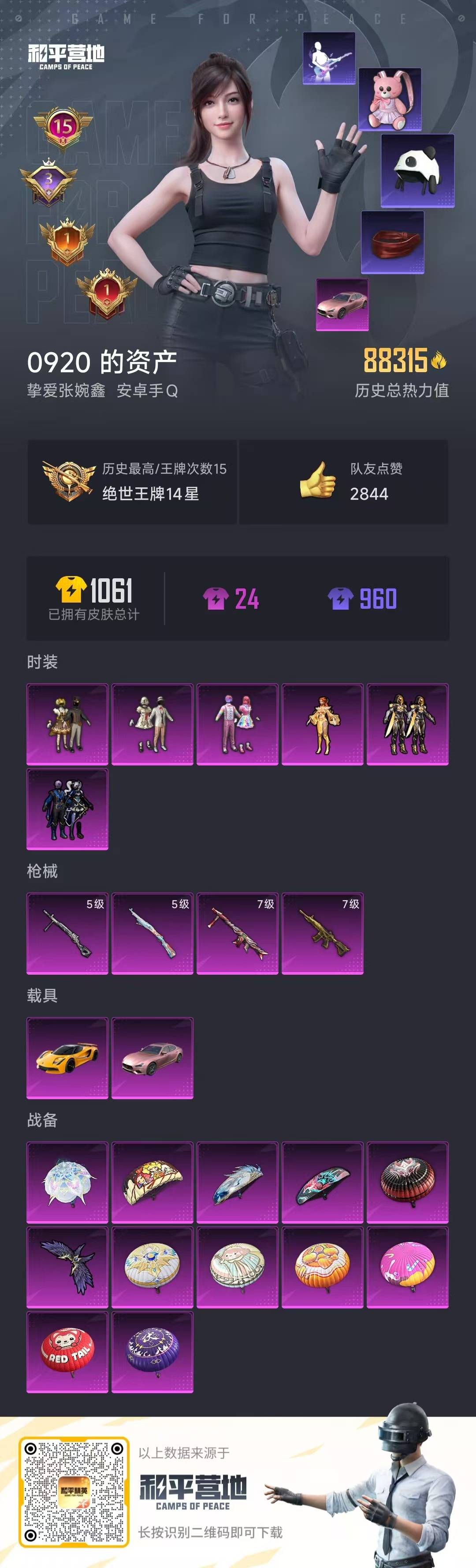 - PX_2104893- 安卓手Q-19王牌印记-有战神框-12粉装-18特效枪-4载具-99807热力值-184套装-303枪皮-4卓越印记-2传奇印记 【12粉装】,梦幻火箭,宝贝奶油派,天使彩虹糖,第五大道,智耀战神,时空协奏·心弦,闲梦青缨,猩猩队长,紫电风暴,冰霜白皇,仲夏莫吉托,数码大师 【18特效枪】AKM-甜心宝贝-7级 M16A4-垂柳戏鸭-5级 SCAR-L-时空协奏-3级 M4