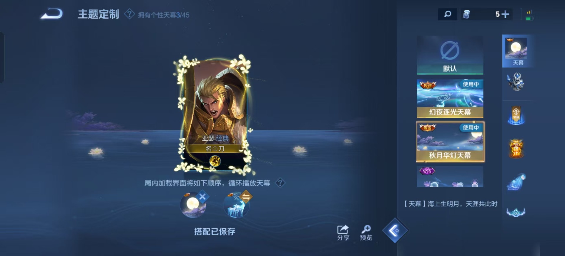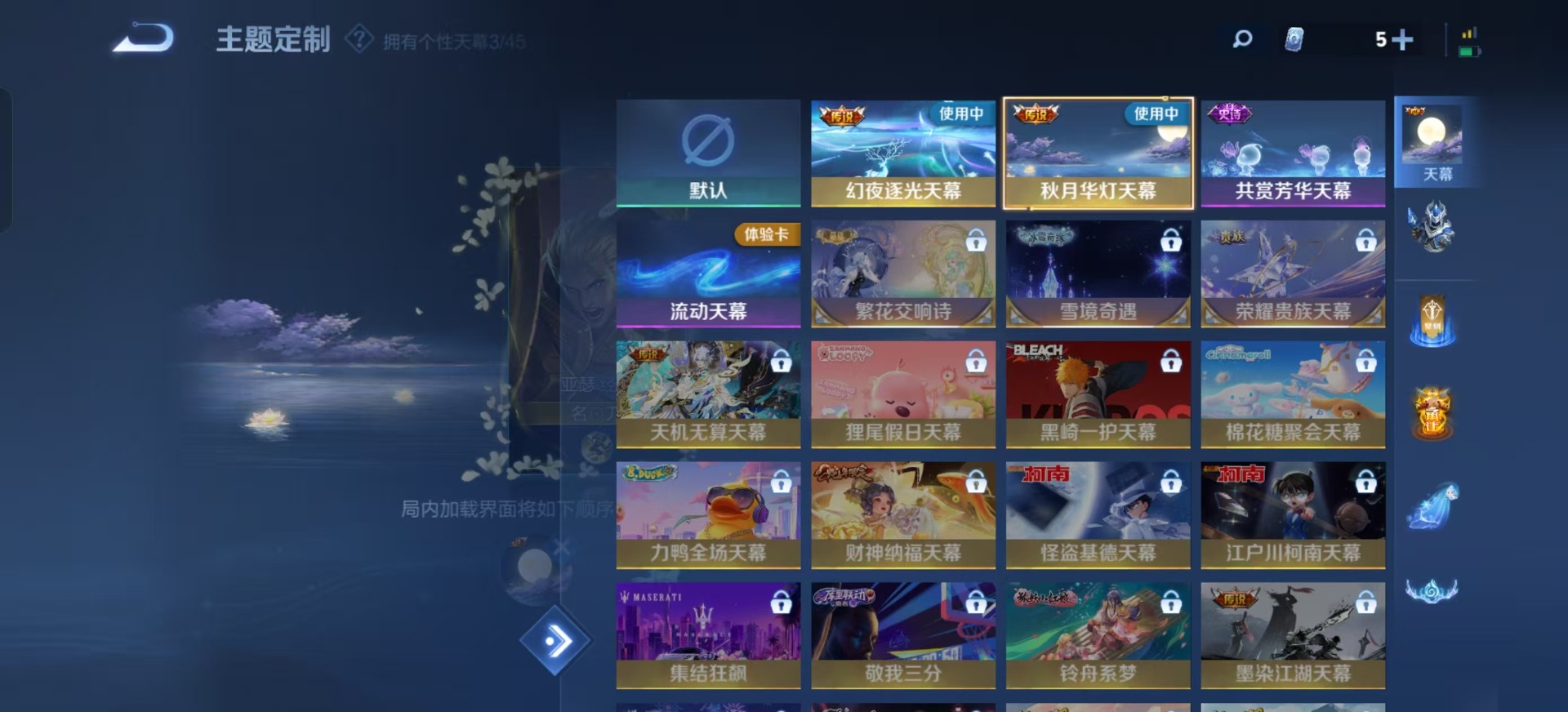 刘邦夺宝奇兵,沈梦溪大漠名商,苏烈千军破阵,典韦蓝屏警告,达摩沙漠行僧,项羽苍威无极,吕布猎兽之王,镜青焰无极,兰陵王金庭之子,裴擒虎擒涛扼浪,鲁班大师探海日志,鬼谷子原初探秘者,张良古海寻踪,桑启海盐诗旅,狄仁杰万华元夜,程咬金演武夺筹,李元芳云中旅人,弈星混沌棋,钟馗驱傩正仪