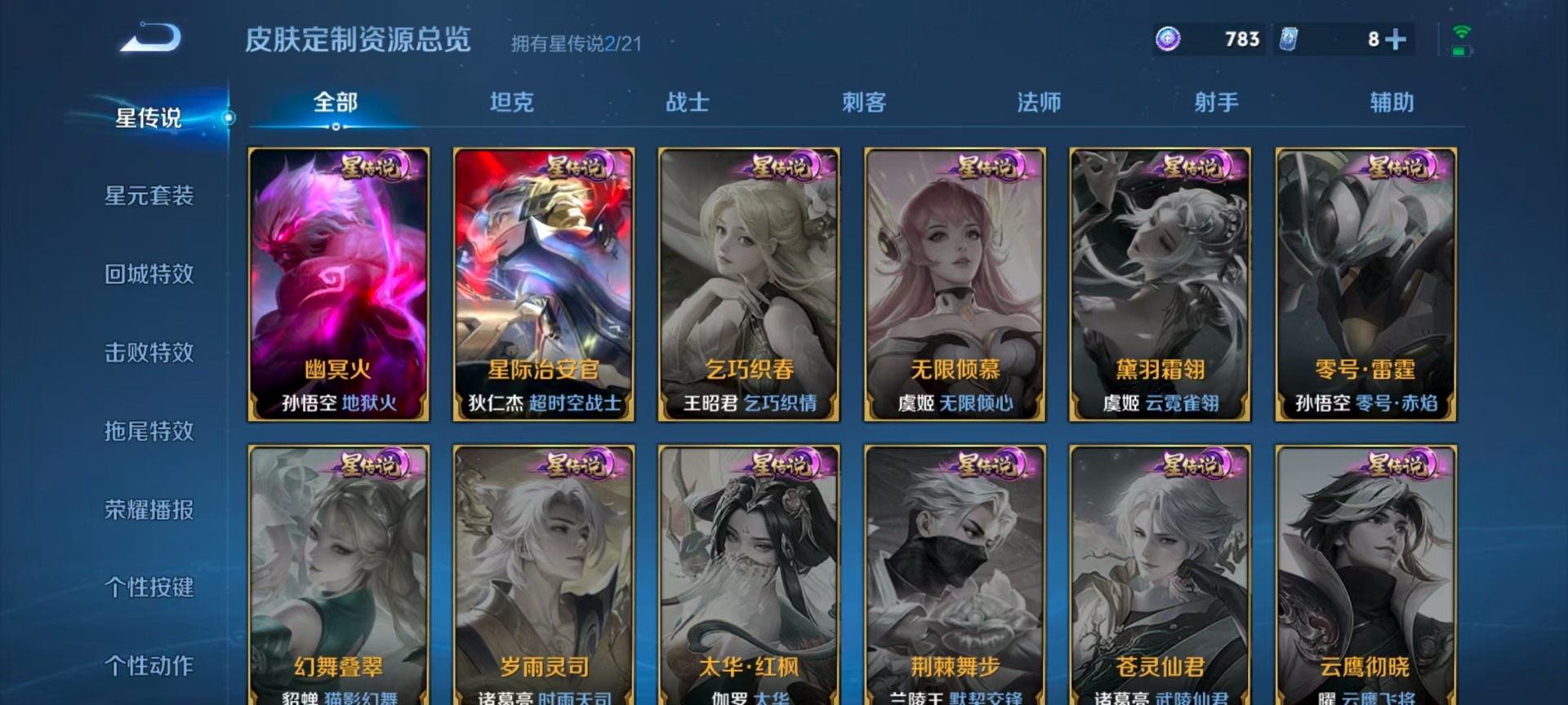 曹操天狼征服者,伽罗天狼溯光者,赵云龙胆,典韦岱宗,鲁班七号寅虎·瑞焰,吕布御风骁将,裴擒虎李小龙,上官婉儿梁祝,花木兰默契交锋,马可波罗山海·玄木吟,猪八戒猪悟能,孙悟空至尊宝,妲己愿照·众生和,韩信飞衡,澜愿照·九州拓,虞姬愿照·岁时盈
