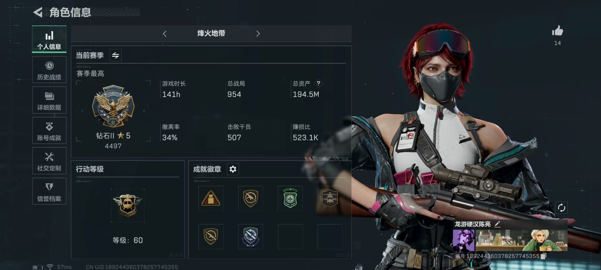 [11603879]总资产:194.5M 11传说枪械 哈夫币:124K 高级安全箱(2×3)9.15号到期 可二次 可修改实名 烽火地带段位:钻石 全面战场段位:上等兵 传说武器皮肤:UZI冲锋枪-特斯拉线圈,M16A4突击步枪-狩猎时刻,AK-12突击步枪-特斯拉线圈,SR-3M紧凑突击步枪-特斯拉线圈,Vector冲锋枪-狩猎时刻,Vector冲锋枪-能天使-午夜邮差,G3战斗步枪-狩猎时刻,复合弓-黑-天际线,725双管霰弹枪-送葬人-无题密令,M4A1突击步枪-阿米娅,CAR-15突击步枪-阿米娅