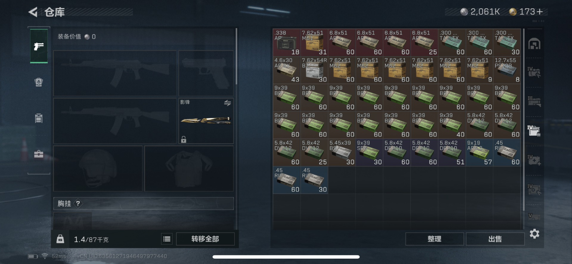 [11604031]可二次 可修改实名 实名:可修改 烽火地带段位:钻石 全面战场段位:军士长 顶级安全箱(3×3)9.15号到期 总资产:87.6 哈夫币:2.061 传说武器皮肤:近战-影锋,AS Val突击步枪-蛇年祥瑞,SCAR-H战斗步枪-水墨云图,SR-25射手步枪-水墨云图,AWM狙击步枪-影锋,M1014霰弹枪-影锋,SCAR-H战斗步枪-铁艺苍穹,AK-12突击步枪-夜鹰,SMG45冲锋枪-骑士,复合弓-黑-天际线,CAR-15突击步枪-阿米娅,725双管霰弹枪-送葬人-无题密令,M7战斗步枪-维京,M4A1突击步枪-蚀金玫瑰,P90冲锋枪-神秘艺术,QBZ95-1突击步枪-破军,M7战斗步枪-神秘艺术 史诗武器皮肤:SR-3M紧凑突击步枪-英雄,QBZ95-1突击步枪-ACE,M4A1突击步枪-特勤执行,AUG突击步枪-特勤执行,Vector冲锋枪-红色彗星,PTR-32战斗步枪-ACE,SKS射手步枪-ACE,AUG突击步枪-蝮蛇,M700狙击步枪-蝮蛇,PKM通用机枪-蝮蛇,G3战斗步枪-战场英杰,SR-25射手步枪-尖端治疗,PKM通用机枪-荒野求生,AS Val突击步枪-尖端治疗,M700狙击步枪-守夜人,SG552突击步枪-尖端治疗,Ash-12战斗步枪-守夜人,MP5冲锋枪-深海恐惧,勇士冲锋枪-深海恐惧,SG552突击步枪-深海恐惧,AKM突击步枪-林中猎手,M16A4突击步枪-竞赛选手,PKM通用机枪-守夜人,M1014霰弹枪-林中猎手,SV-98狙击步枪-林中猎手,PSG-1射手步枪-无垢,AS Val突击步枪-典狱官,M250通用机枪-囚徒,SV-98狙击步枪-囚徒,SCAR-H战斗步枪-囚徒,M700狙击步枪-阿萨拉工艺,QBZ95-1突击步枪-曙光,UZI冲锋枪-危险实验,M249轻机枪-维京,SCAR-H战斗步枪-危险实验,沙漠之鹰-曙光,K416突击步枪-竞技风,SCAR-H战斗步枪-国风,G3战斗步枪-阿萨拉工艺,Vector冲锋枪-阿萨拉文明,SVD狙击步枪-阿萨拉工艺,S12K霰弹枪-曙光,AS Val突击步枪-刀锋,PKM通用机枪-英雄,PKM通用机枪-魔药,M700狙击步枪-竞技风,QSZ92G-风林火山,93R-博士,AUG突击步枪-战术迷彩 干员外观:红狼-蚀金玫瑰,骇爪-水墨云图,威龙-飞虎,露娜-黑·天际线