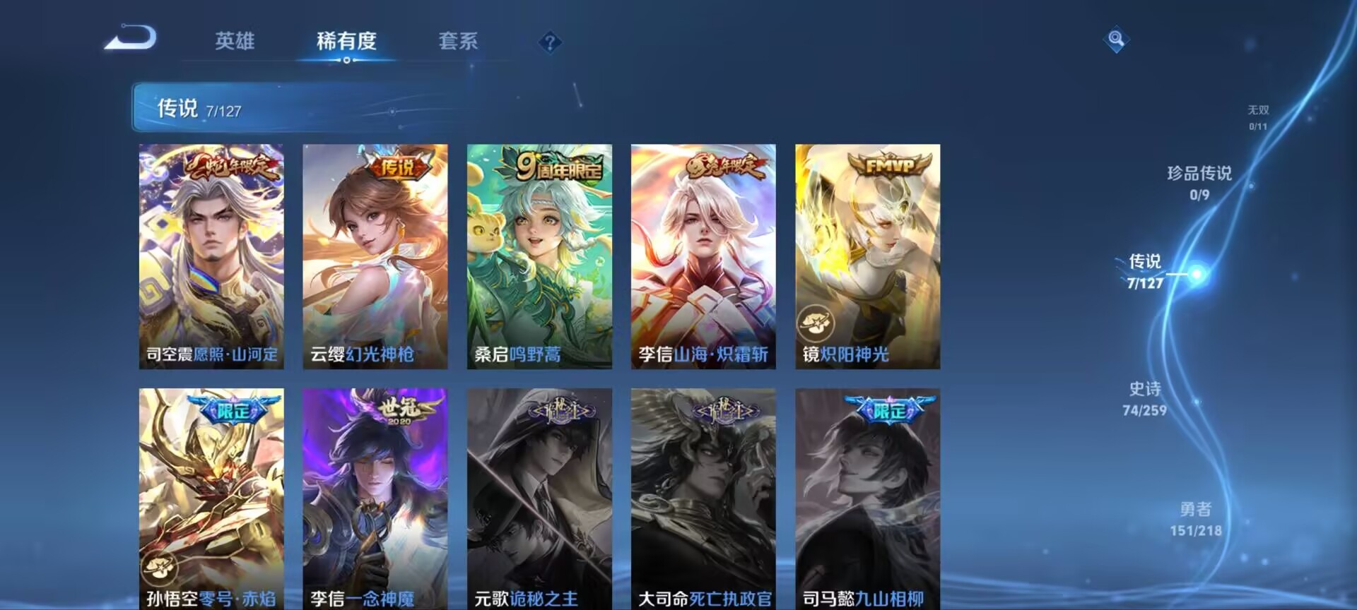 铠青龙志,司空震愿照·山河定,裴擒虎李小龙,上官婉儿梁祝,桑启鸣野蒿,孙悟空孙行者,孙悟空至尊宝,孙悟空美猴王,马超神威,赵云引擎之心