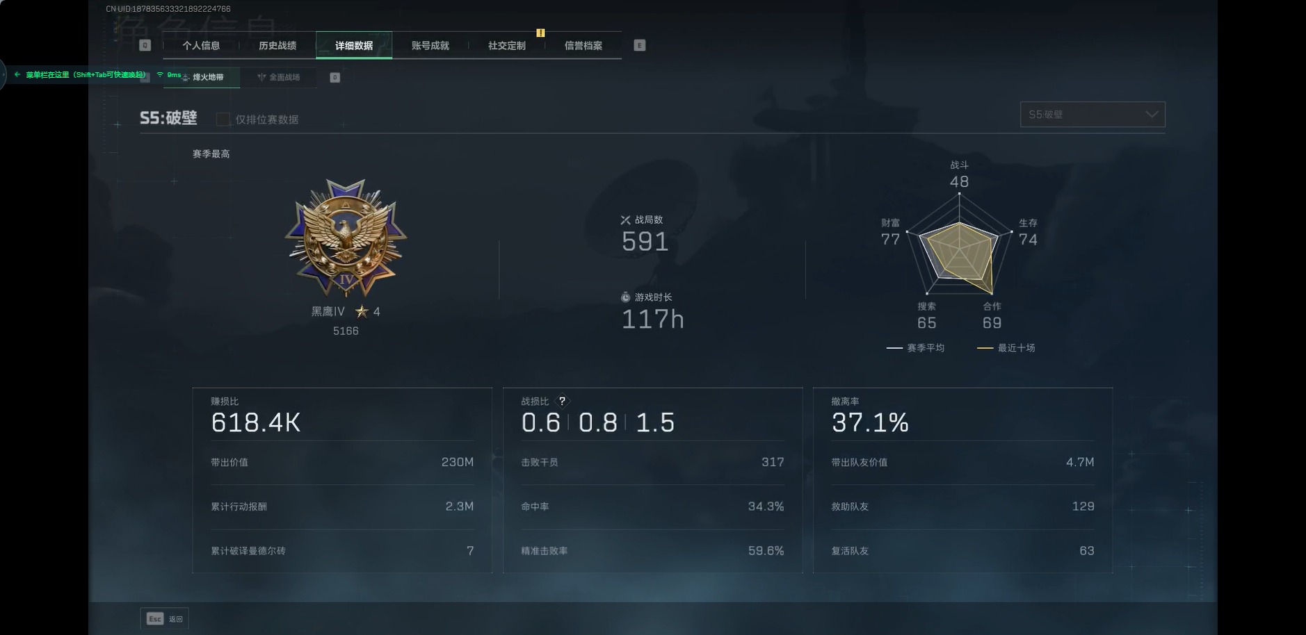 [11604423]总资产:102.1M 11传说枪械 哈夫币:61.758K 进阶安全箱(2×2)9.15号到期 可二次 可修改实名 烽火地带段位:黑鹰 全面战场段位:无段位 传说武器皮肤:SR-25射手步枪-水墨云图,M16A4突击步枪-狩猎时刻,M4A1突击步枪-阿米娅,CAR-15突击步枪-阿米娅,复合弓-黑-天际线,Vector冲锋枪-狩猎时刻,G3战斗步枪-狩猎时刻,AWM狙击步枪-捞点薯条,腾龙突击步枪-捞点薯条,93R-捞点薯条,勇士冲锋枪-能天使-午夜邮差 史诗武器皮肤:M16A4突击步枪-竞赛选手,MP5冲锋枪-深海恐惧,勇士冲锋枪-深海恐惧,SG552突击步枪-深海恐惧,AKM突击步枪-林中猎手,M1014霰弹枪-林中猎手,SV-98狙击步枪-林中猎手,PTR-32突击步枪-英雄,M250通用机枪-囚徒,SCAR-H战斗步枪-囚徒,QBZ95-1突击步枪-曙光,Vector冲锋枪-阿萨拉文明,SVD狙击步枪-阿萨拉工艺