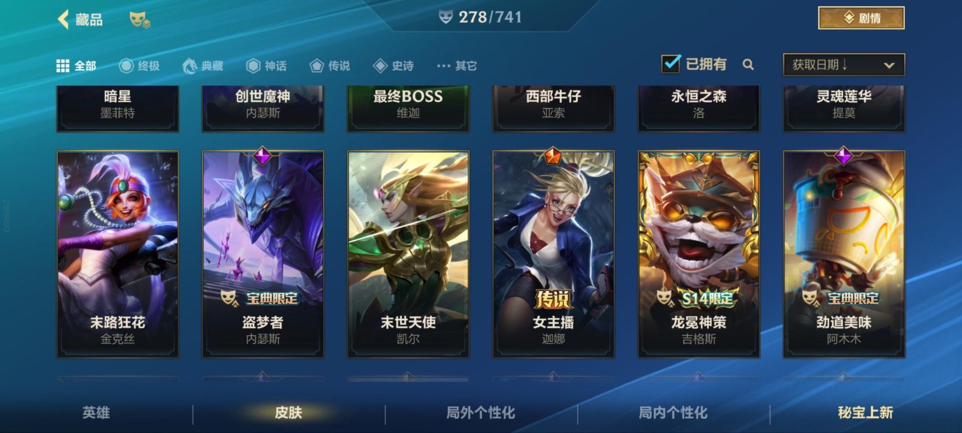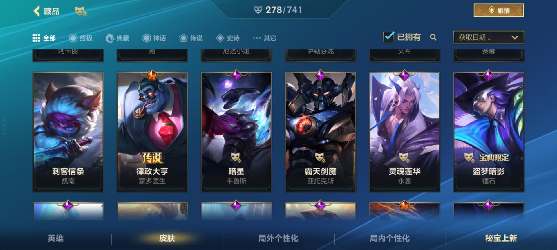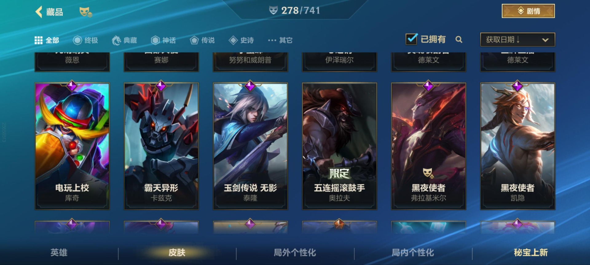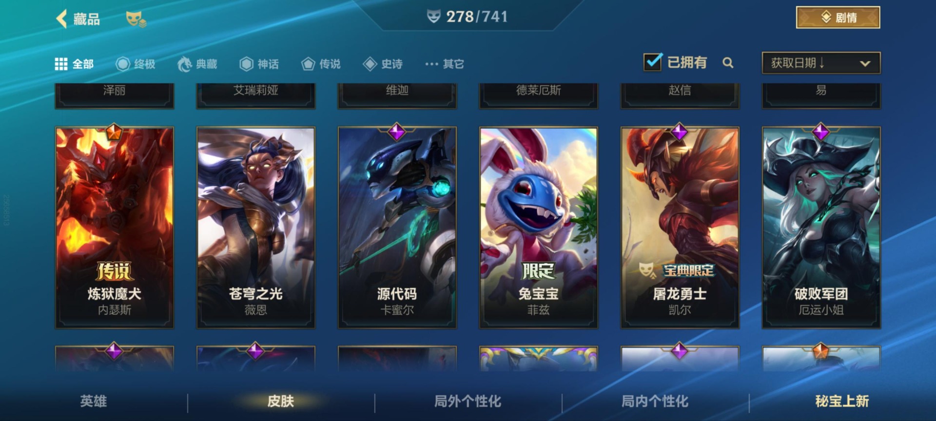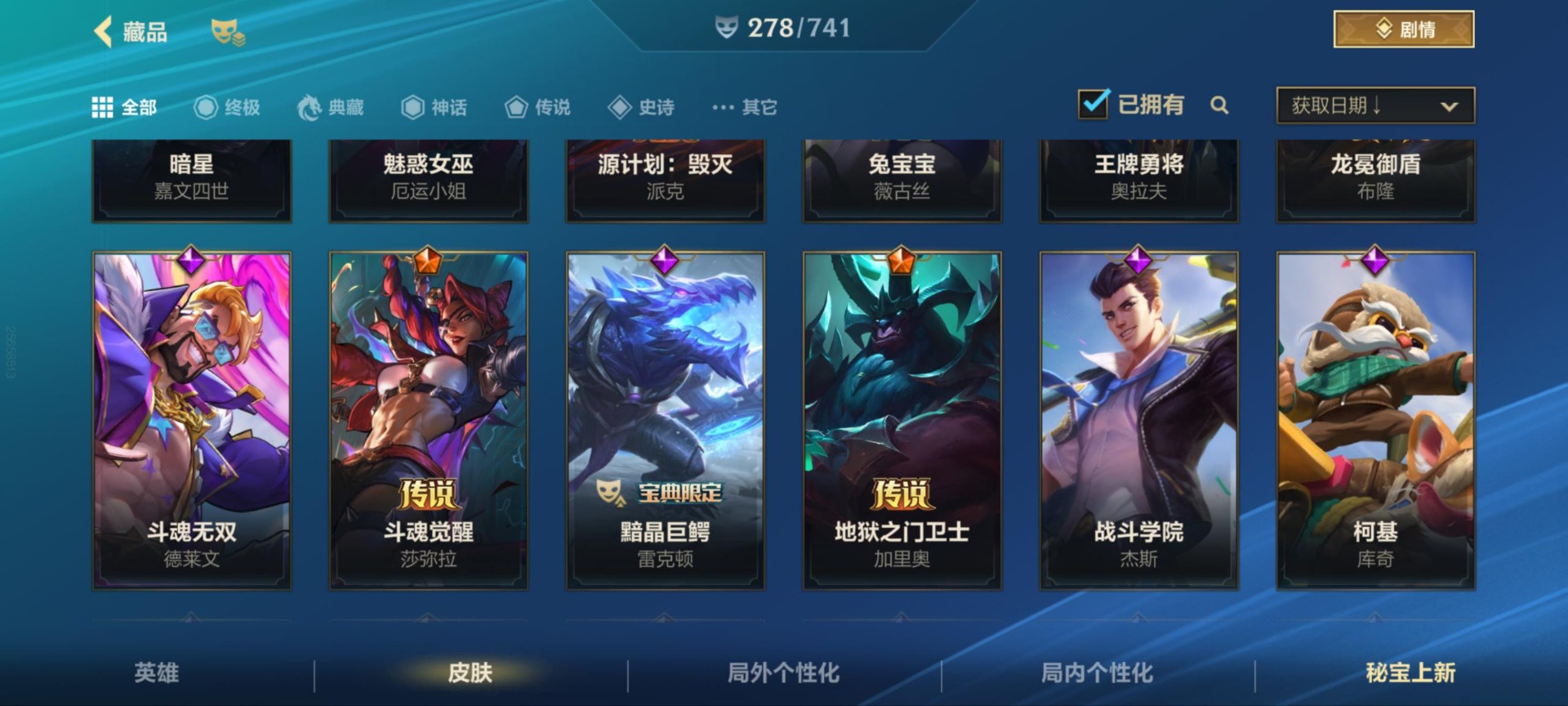 [11604441]可二次 可修改实名 1神话 38传说 141史诗 278皮肤 129英雄 铂金 皮肤:德莱文-灵魂收割者,德莱文-金牌主播,德莱文-斗魂无双,德莱文-破败军团,德莱文-绯金战斧,德莱文-德莱德莱,格雷福斯-泳池派对,格雷福斯-战斗教授,格雷福斯-光明哨兵,格雷福斯-绝命机甲,格雷福斯-末路教父,格雷福斯-禁卫机甲,艾瑞莉娅-莲花之令,艾瑞莉娅-光明哨兵,艾瑞莉娅-西部天使,艾瑞莉娅-斗魂无双,艾瑞莉娅-玉剑传说 舞剑仙,艾瑞莉娅-冰霜之刃,菲奥娜-源计划:火,菲奥娜-玉剑传说 无双,菲奥娜-泳池派对,菲奥娜-绯金丽刃,菲奥娜-福牛守护者,菲奥娜-皇家守卫,奥拉夫-黑暗骑士,奥拉夫-猎龙勇士,奥拉夫-光明哨兵,奥拉夫-五连摇滚鼓手,奥拉夫-王牌勇将,奥拉夫-铁哥们儿,艾希-王牌司令,艾希-西部天使,艾希-极地女神,艾希-女皇,艾希-黑暗骑士,菲兹-柚子软糖,菲兹-兔宝宝,菲兹-虚空海灵,菲兹-欧米伽小队 鬼影蛙人,菲兹-绒毛,厄运小姐-女帝,厄运小姐-魅惑女巫,厄运小姐-破败军团,厄运小姐-星之守护者,厄运小姐-西部牛仔,烬-斗魂觉醒