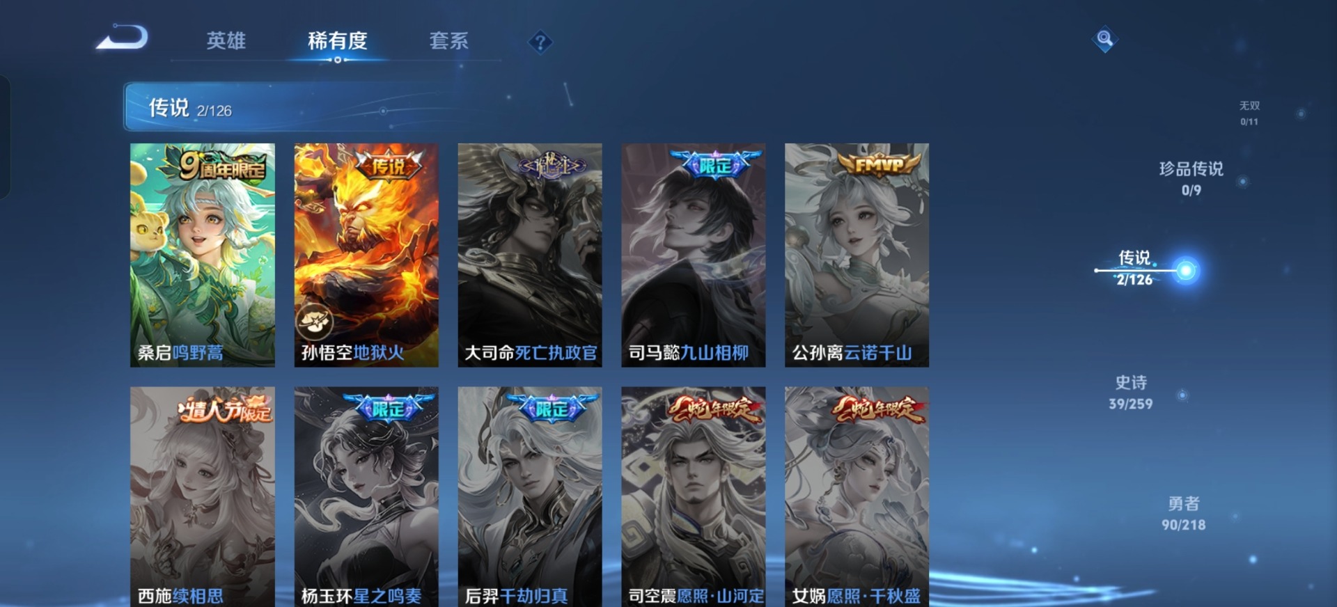 - [11578996]V8 11传说 121英雄 237皮肤 可修改实名 传说皮:幻光神枪,李逍遥,黄金狮子座,地狱火,末日机甲-孙尚香(绿蚂蚱),冠军飞将,久胜战神,炽阳神光,无双飞将,时之恋人-刘备(电焊工) 珍宝阁皮:妄想食味,蔷薇恋人 限定皮:至尊宝,凤凰于飞,寅虎·展翼(孙膑年限),遇见飞天,高山流水,五谷丰年,游园惊梦,梁祝,御风骁将(吕布年限),烈魂,李小龙,朱雀志(守约年限),霸王别姬-虞姬,引擎之心 史诗皮:琥珀纪元伽罗,遇见神鹿,紫霞仙子,白龙吟,蒙恬荣光圣徽,冰冠公主,偶像歌手,晚萤,无限星赏官,魅语,龙骑士(小龙虾),乱世虎臣,节奏热浪,修罗,女仆咖啡,水果甜心,天才门将,心灵骇客,功夫厨神,暗隐猎兽者,幽灵船长,鬼剑武藏,舞动绿茵,纤云弄巧,繁星吟游(呼啦呼啦),缤纷独角兽,乘风破浪,水晶猎龙者,曙光守护者,金属风暴,原初追逐者,圣诞狂欢,鹰眼统帅,黎明之约,赏金猎手