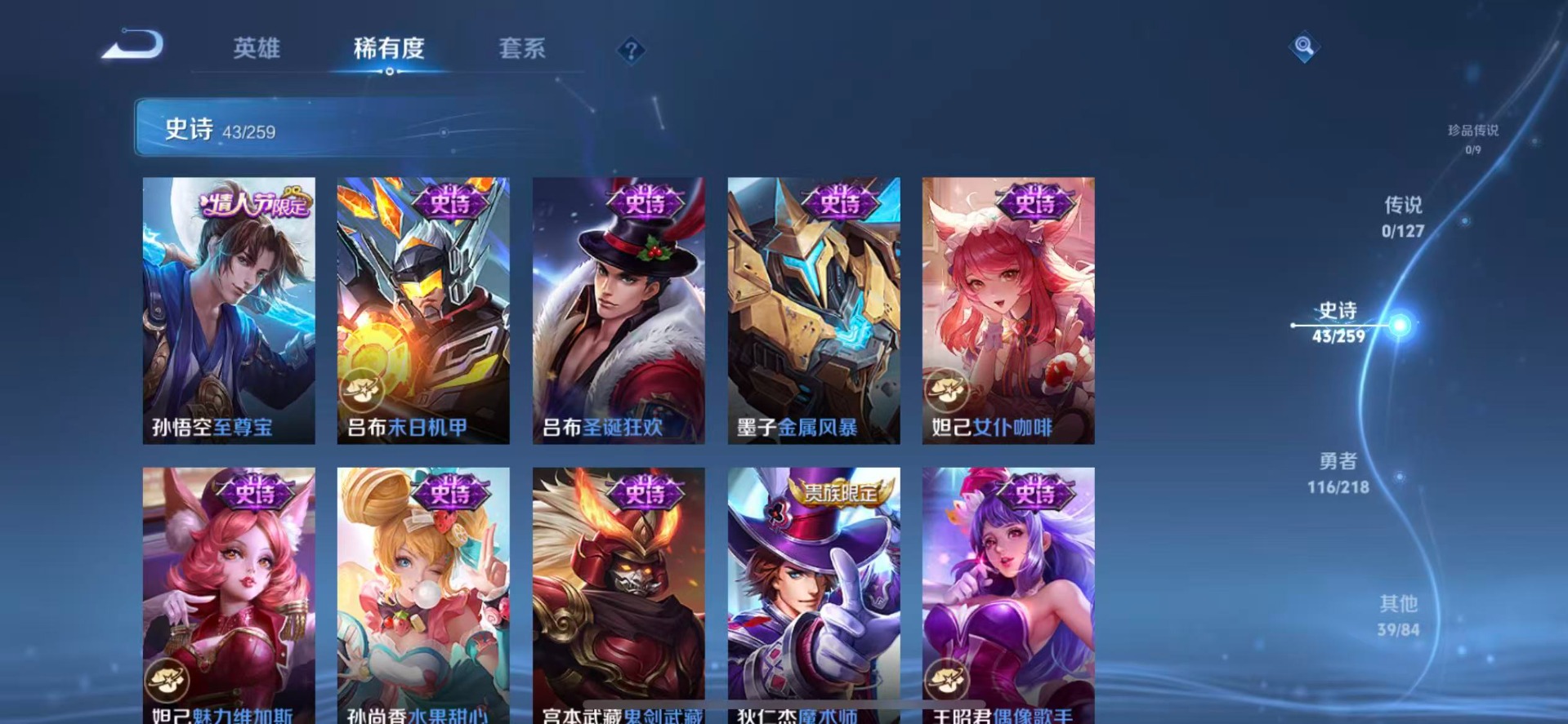 - PX_2079620-可二次 安卓q-V7-印记11 260皮肤-2星传说 星际治安官 未来机甲 1典藏 12传说 -1典藏(已兑换) 鸣剑曳影 战鼓燎原 逐花归海 幻光神枪 愿照九州拓 至尊宝 鸣野蒿 时雨天司 飞衡 零号赤焰 霸王别姬女 傲雪梅枪 冰霜恋舞曲 玉兔公主 孙行者 冰冠公主 无双飞将 暗影游猎 原初追逐者 黎明之约 梁祝 狂想玩偶喵 暗夜猫娘 诗语江南 龙骑士 未来纪元赵云 黄金