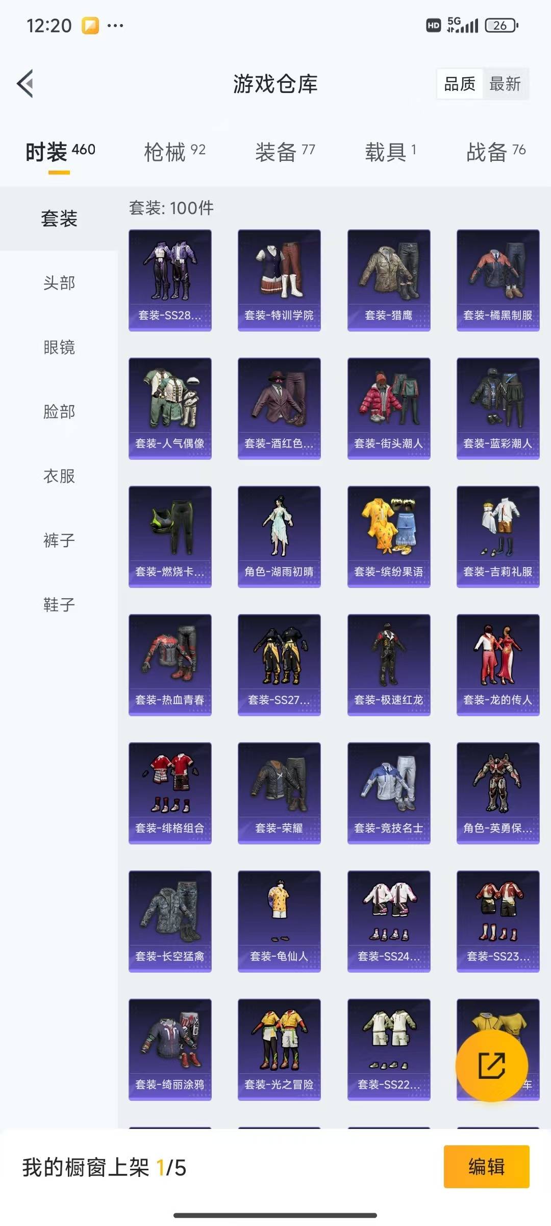 - [12090360]8粉装 9特效枪 6印记 可二次 可修改实名 连体王者 优质装备:M416风花雪月,UMP45恐龙拽拽,SCAR-L-锦绣绵绵,PKM江南烟雨,七级UMP45-恐龙拽拽,M416电玩时刻,GROZA-镜光银凌,AUG-暖羊咩咩,智耀战神,冷漠罗丽,Kar98K-巳巳如意 热门装扮:飓风飞鹰,复仇流浪者,宙之时溯,星云暗核,蜜语绒猫,金丰海韵 稀有枪皮:DP-28-豹影疾电 六级特效枪:六级PKM-江南烟雨 五级特效枪:五级GROZA-镜光银凌,五级Kar98K-巳巳如意,五级DP-28-豹影疾电,五级AUG-暖羊咩咩,五级M416-电玩时刻,五级SCAR-L-锦绣绵绵,五级M416-风花雪月 紫色装扮:幻彩翩翩,SS31特训套装,极速光影,SS30特训套装,SS33特训套装,青涩时光,顶瓜瓜,圣诞惊喜,军刀雅典娜,英勇保护者,天籁歌者,长空猛禽,霓虹街区,缤纷果语,荣耀,魅力单车,龙的传人,蝶变,香桃花海,海岛探路者,涂山之恋,深蓝色名流,幻影武者,白色伏地魔,空岛之星,灼焰舞者,燃烧卡路里,雏菊兔兔,萝兰蝴蝶,SS29特训,狂花道·雅典娜,星途旅人,创世·幻影,SS28特训,冰公主,异域银装,鱼渊荷华,燕燕于飞,巳巳如意,都市丽猫,青团波波,糖糖葫芦,棉花软糖,竞技名士,街头风暴,深海梦境,惊鸿侠骨,甜梦熊熊,神气柴柴,懵萌河马,SS24特训(SS24特训套装),SS25特训,元气发射,金戈铁马,锦衣飞扬,粉红小猪,焰鹰斗篷,幻羽潜行,幽夜迷踪,SS27特训,萌趣绒叽,华灯初上,SS26特训,智谋强哥,星影赞美诗,SS32特训服(SS32特训套装),恋语绒绒 优质战备:江南烟雨降落伞,万古烈焰降落伞,超新星降落伞,恐龙拽拽降落伞,千金淑猫降落伞,蜜语绒猫降落伞,时光之吻飞行器,幻星舰长降落伞,荧海星豚降落伞,鬼刀降落伞,戏水时光降落伞,环太平洋降落伞,未来歌姬降落伞,梦幻火箭降落伞,飞行器-齐天大圣