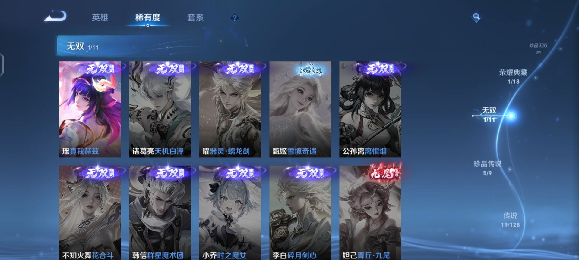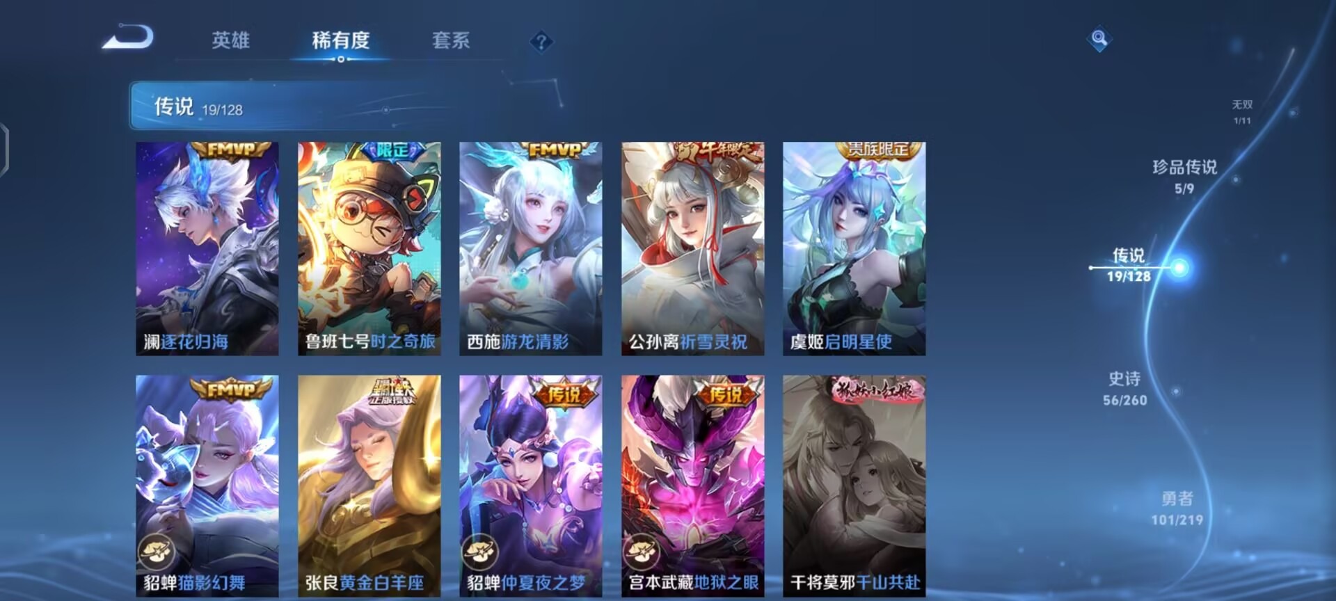 - [12148179]V7 2典藏 1珍品无双 1无双 1珍品传说 7传说 78英雄 91皮肤 可修改实名 优质装备:馥梦繁花,天鹅之梦(小乔典藏),幻阙歌(貂蝉典藏),天机白泽,大耳狗之梦,仲夏夜之梦(大飞蛾),乞巧织情,炽翼辉光(娃娃菜牛角包),霜月吟,涂山容容 传说皮:死亡执政官,九山相柳 限定皮:白鹤梁神女,白晶晶,山海·碧波行(瑶年限),至美·乘鲤谣,诗剑行,寅虎·心曲(虎婆),时之奇旅-妲己 史诗皮:鸭鸭历险记-刘禅,龙之律动,石田雨龙,百相守梦-周瑜,百相守梦-黄忠,涂山红红,东方月初,幻珠鲛人,守夜人,织梦人,遇见神鹿,冰冠公主,白蛇,青蛇,魅语,偶像歌手,时之恋人-孙尚香,女仆咖啡,水果甜心,鬼剑武藏,暗渊魔法,乘风破浪,圣诞狂欢,圣诞恋歌,魅力维加斯