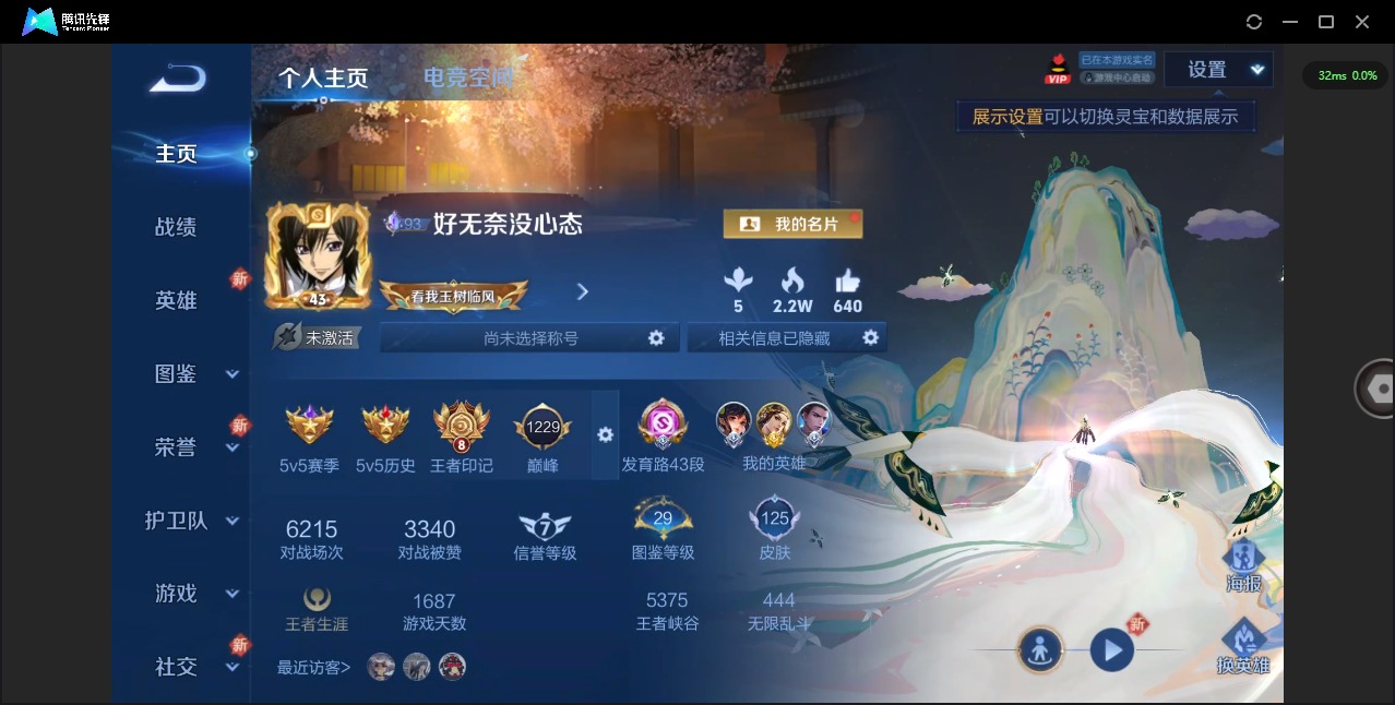 - PX_2081163-贵族等级: V3 英雄数: 89 皮肤数: 58 传说皮: 妄想实况 限定皮: 五谷丰年
