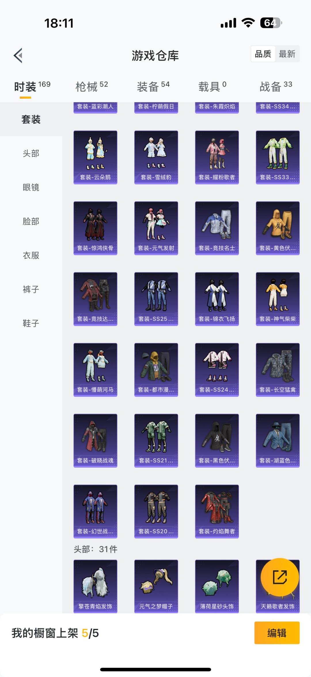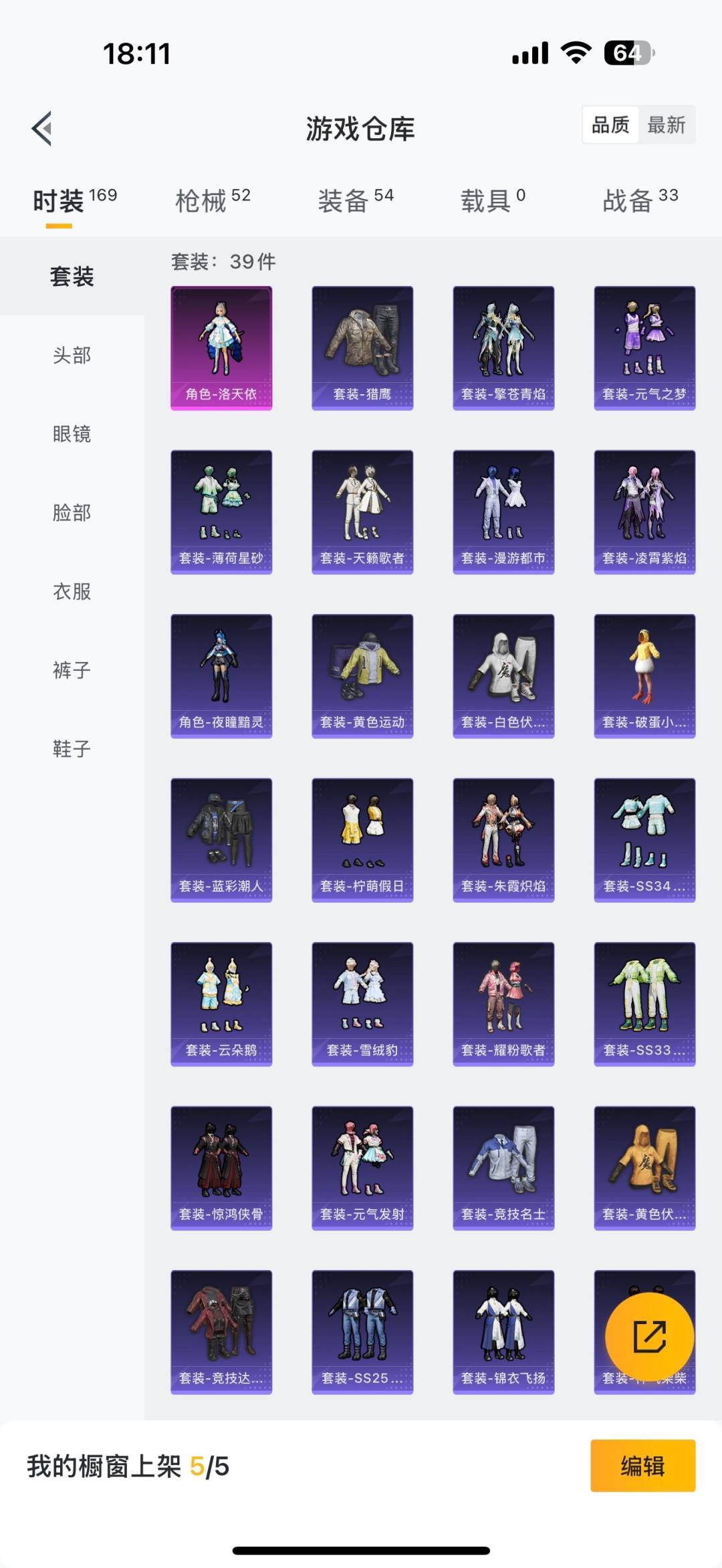 - [12215729]13橙皮 1金皮 3紫皮 53皮肤 27英雄 81卡面 715已用源晶 钻石 优质装备:幻影-781-A协议,正义-塑水宗,狂徒-洪荒怒焰,奥丁-天界神兵2.0,镭切,神圣领域 战刀,阿特拉斯指挥部,魔术火花,泡泡电锯,幻影-末日泡泡,冥驹-末日泡泡,正义-末日泡泡,蜂刺-末日泡泡 佩枪皮肤:标配-VCT25xKRU 步枪皮肤:奇幻朋克3.0狂徒,幻影-奇幻朋克3.0,RGX 11z pro 狂徒