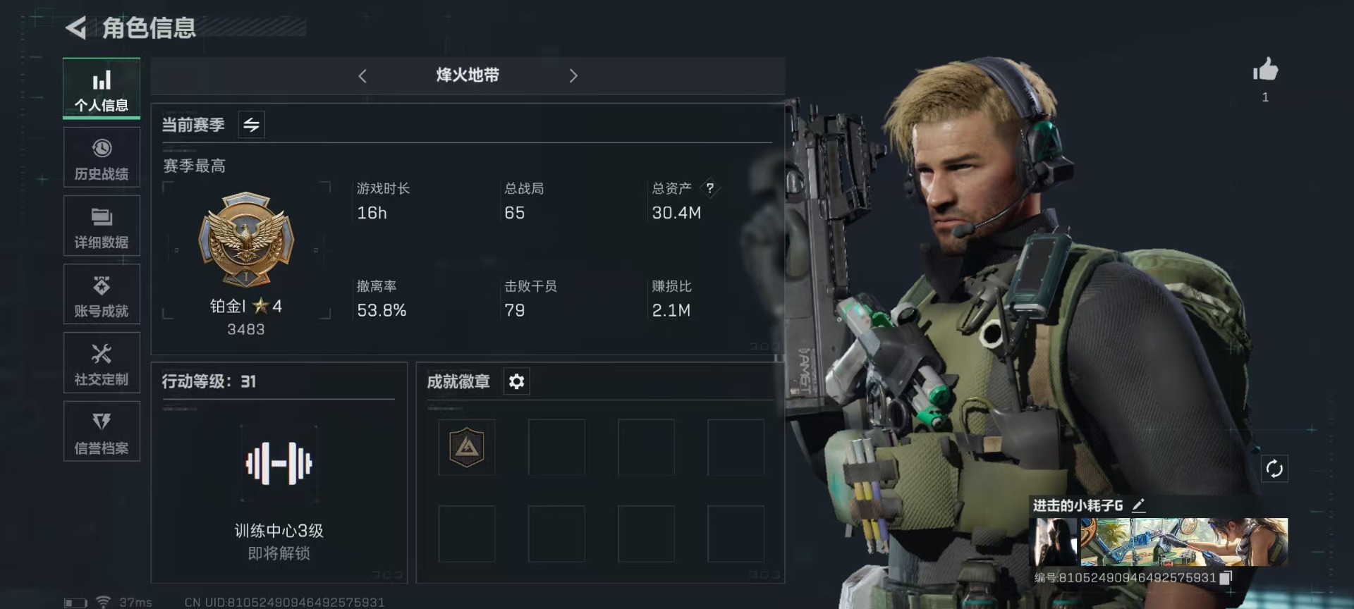 [11605026]总资产:30.4M 1传说枪械 哈夫币:21.461K 可二次 可修改实名 烽火地带段位:铂金 全面战场段位:无段位 传说武器皮肤:M4A1突击步枪-阿米娅