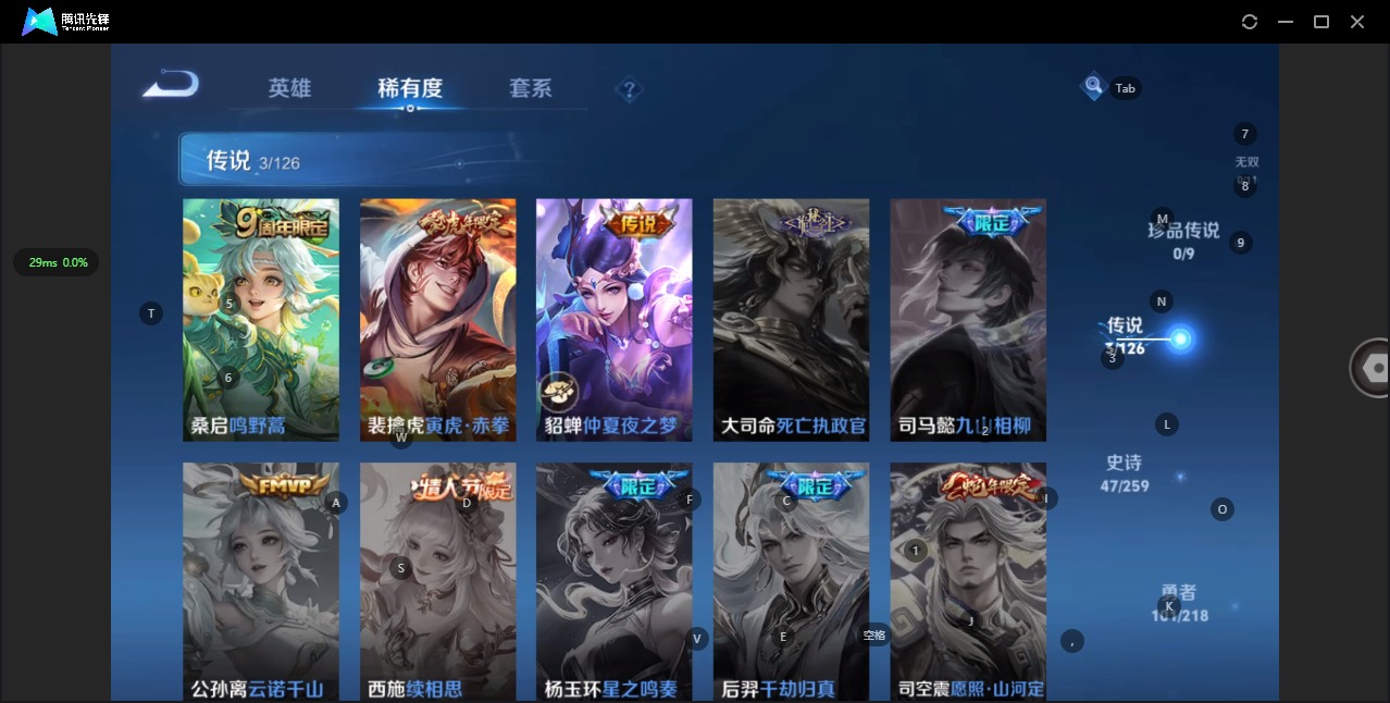 - [11314322]V9 1典藏 35传说 125英雄 353皮肤 可修改实名 优质装备:赤影疾锋,黄金射手座,云鹰飞将(小将军),绛天战甲(鸡嘴战神),猫影幻舞,久胜战神,炽阳神光,一念神魔,云霓雀翎,地狱火,李逍遥,乞巧织情,时之恋人-刘备(电焊工),游龙清影(小青龙),淬星耀世,山海·炽霜斩(李信年限),山海·琳琅生(小乔年限),山海·苍雷引(电光曜子),燃星之曲,画中仙,浮生妄,记忆之芯(机甲兔),百相守梦(张飞),鹤羽星尊,惊梅引 传说皮:乘龙·淬吴钩(孙策年限) 珍宝阁皮:妄想食味,优雅恋人,女武神 限定皮:鸣野蒿,武陵仙君(小桃花),魔法小厨娘,时雨天司(水龙头),神威(电光马子),山海·碧波行(瑶年限),无限倾心-项羽,高山流水,诗剑行,齐天大圣,怒海麟威,五谷丰年,青龙志(铠年限),幽恒(沐浴露),游园惊梦,梁祝,天狼狩猎者,龙胆,烈魂,虎魄,天狼绘梦者,李小龙,逐梦之影,逐梦之光,玄武志(苏烈年限),朱雀志(守约年限),永曜之星,默契交锋-兰陵王,真爱至上,引擎之心,寅虎·心曲(虎婆),唐三藏,山海·玄木吟(马可年限) 史诗皮:星界战将,石田雨龙,蔬乡物语(鲁班七号),乘龙·聚宝船(安琪拉年限),百相守梦-黄忠,紫霞仙子,苍穹之光,白龙吟,黄金分割率,特工魅影,千年之狐,电玩·爆裂旋风,鹤归松栖(赵怀真),江河有灵,雪夜绮愿(周瑜),高渐离燃音魔法,蒙恬荣光圣徽,偶像歌手,魅语,晚萤,冰冠公主,青蛇,末日机甲-吕布,猫狗日记-孙策,猫狗日记-大乔,时之恋人-孙尚香,乱世虎臣,节奏热浪,修罗,女仆咖啡,摇滚巨星,水果甜心,绅士熊喵,天才门将,星夜王子,心灵骇客,功夫厨神,德古拉伯爵,暗隐猎兽者,幽灵船长,鬼剑武藏,暗渊魔法,心灵战警,乐园奇幻夜,舞动绿茵,地狱岩魂,诗语江南,纤云弄巧,缤纷独角兽,乘风破浪,逐浪之夏,月团寄思,水晶猎龙者,曙光守护者,箭羽风息,唤灵魅影,金属风暴,原初追逐者,圣诞狂欢,圣诞恋歌,鹰眼统帅,暗夜贵公子,魅力维加斯,黎明之约,无心,未来纪元-赵云