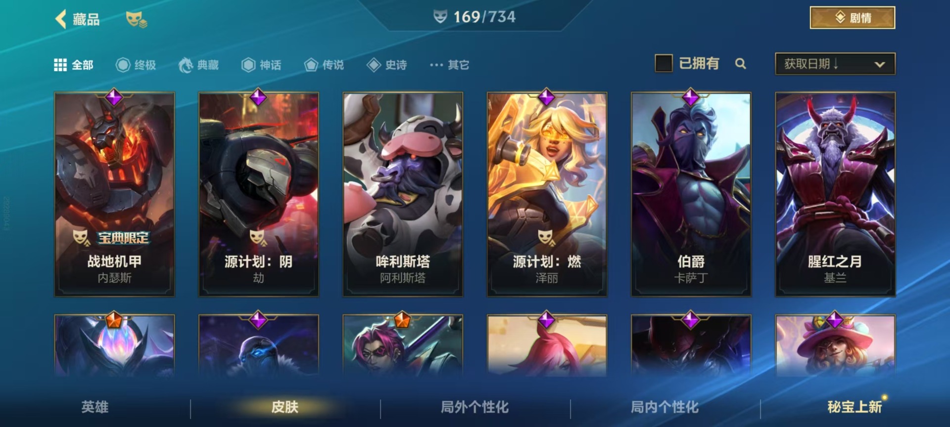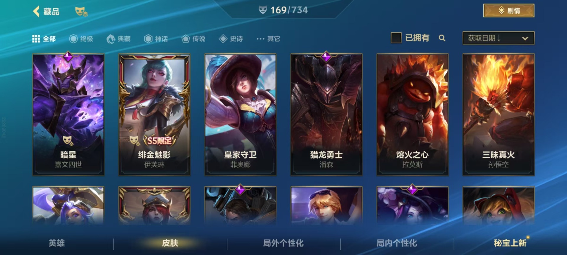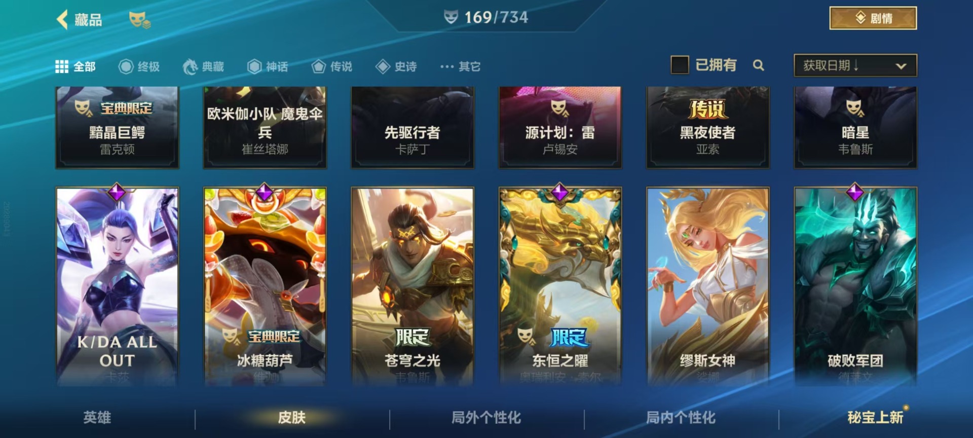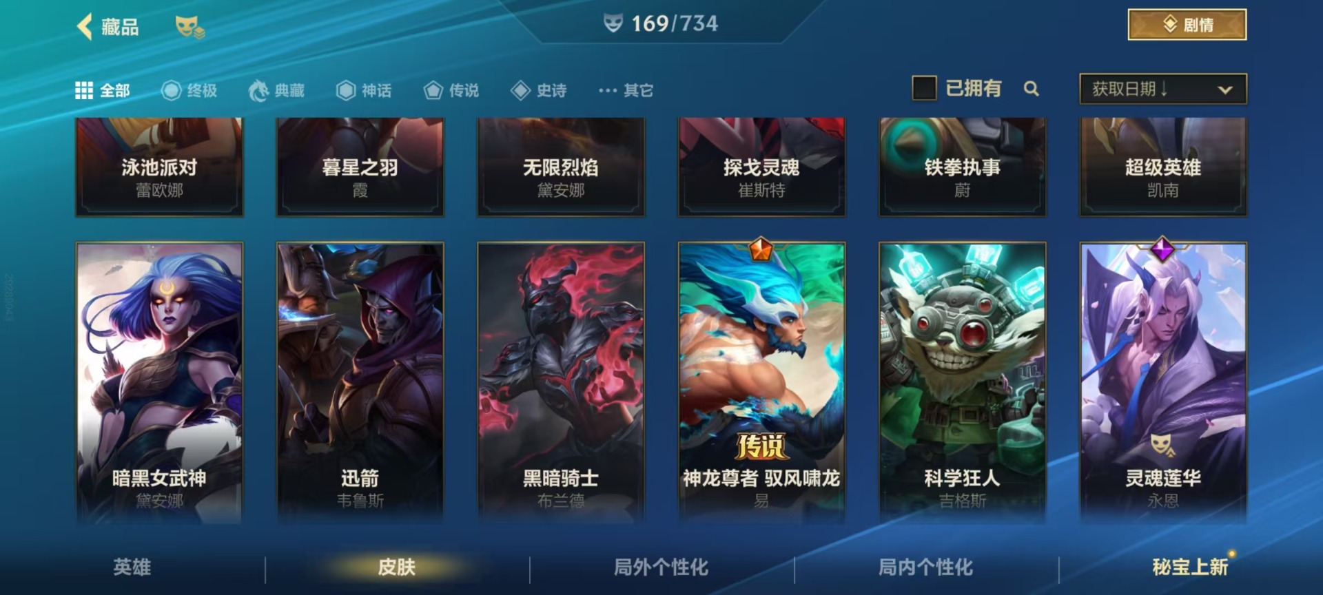- PX_2089638-01 安卓QQ/永恒钻石/135皮肤/109英雄/1典藏/0珍品无双/0无双/0珍品传说/10传说/37史诗/6稀有英雄 【1 典藏皮肤】拾光映像 瑶, 【10 传说皮肤】逐花归海 澜,地狱火 孙悟空,落雪白狼 亚连,怒海麟威 吕布,黄金狮子座 达摩,乘龙·淬吴钩 孙策,末日机甲 孙策,一念神魔 李信,战鼓燎原 典韦,淬星耀世 赵云, 【37 史诗皮肤】蔬乡物语 鲁班七号,百