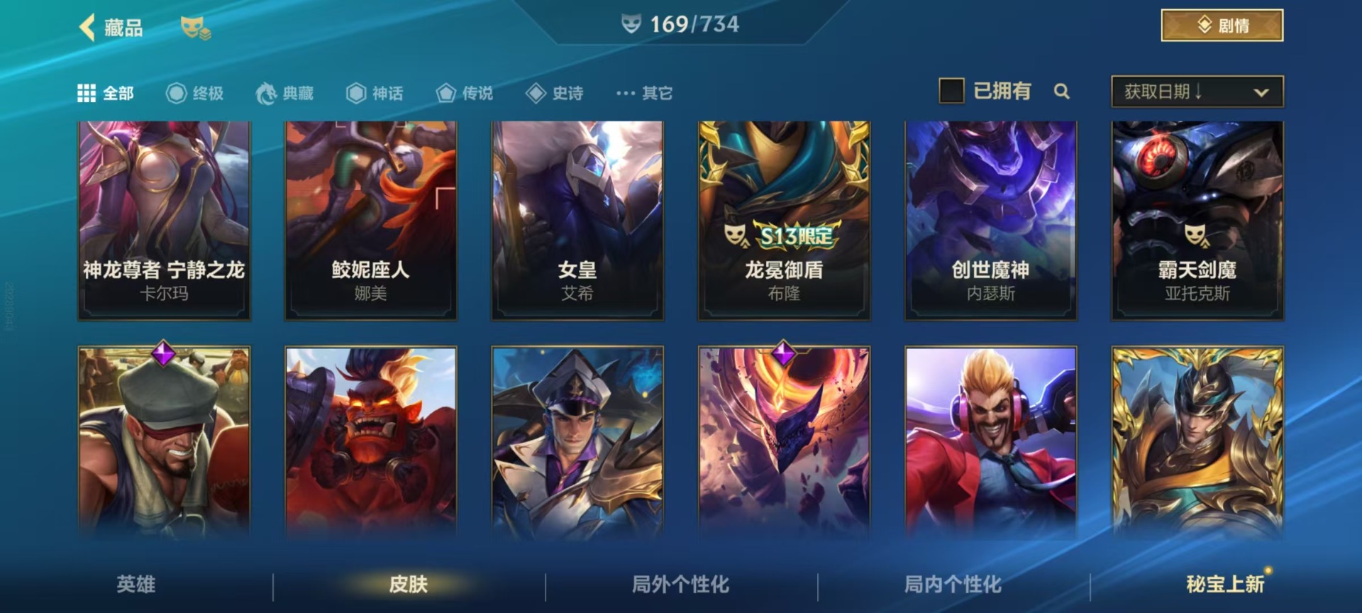 [11605207]可二次 可修改实名 1神话 28传说 64史诗 169皮肤 128英雄 黄金 皮肤:崔斯特-怪诞童话,崔斯特-王牌舰长,崔斯特-星域游侠,崔斯特-探戈灵魂,崔斯特-逍遥赌侠,德莱文-斗魂无双,德莱文-绯金战斧,德莱文-破败军团,德莱文-德莱德莱,德莱文-金牌主播,德莱厄斯-福牛守护者,德莱厄斯-西部魔影,德莱厄斯-热血班长,德莱厄斯-神王,德莱厄斯-灌篮高手,内瑟斯-战地机甲,内瑟斯-单身贵族,内瑟斯-创世魔神,内瑟斯-炼狱魔犬,薇恩-光明哨兵,薇恩-猎龙勇士,薇恩-源计划:净化,薇恩-苍穹之光,伊泽瑞尔-心之钢,伊泽瑞尔-冰川勇者,伊泽瑞尔-战斗学院,伊泽瑞尔-光执事,韦鲁斯-迅箭,韦鲁斯-暗星,韦鲁斯-苍穹之光,韦鲁斯-白色死神,吉格斯-龙冕神策,吉格斯-科学狂人,吉格斯-泳池派对,吉格斯-奥术大师,艾希-王牌司令,艾希-黑暗骑士,艾希-女皇,艾希-极地女神,蕾欧娜-月蚀骑士,蕾欧娜-日蚀骑士,蕾欧娜-泳池派对,蕾欧娜-源计划:山,蔚-双城之战,蔚-女警官,蔚-铁拳执事,蔚-炼狱魔女,卡莎-星之守护者,卡莎-K/DA ALL OUT,卡莎-弹幕天使,烬-龙冕异士,烬-暗星尊,烬-源计划:升华,嘉文四世-王牌上将,嘉文四世-福牛守护者,嘉文四世-暗星,易-神龙尊者 驭风啸龙,易-源计划:林,易-暗影,亚索-战场之王,亚索-西部牛仔,亚索-黑夜使者,菲奥娜-绯金丽刃,菲奥娜-皇家守卫,菲奥娜-源计划:火,杰斯-神奇先驱,杰斯-光明之锤,杰斯-蔷薇绅士,凯南-超武乾坤:电弧,凯南-超级英雄,凯南-刺客信条,雷克顿-黯晶巨鳄,雷克顿-源计划:泯灭,雷克顿-鳄霸,娜美-绯金鲛灵,娜美-玉剑传说 寒潭夭夭,娜美-鲛妮座人,锐雯-光明哨兵,锐雯-玉剑传说 武剑仙,锐雯-电玩勇者,金克丝-双城之战,金克丝-星之守护者,金克丝-光耀之芒,艾瑞莉娅-斗魂无双,艾瑞莉娅-光明哨兵,艾瑞莉娅-冰霜之刃,黛安娜-光明哨兵,黛安娜-无限烈焰,黛安娜-暗黑女武神,加里奥-地狱火,加里奥-风执事,加里奥-地狱之门卫士,奥拉夫-王牌勇将,奥拉夫-猎龙勇士,奥拉夫-黑暗骑士,拉莫斯-制胜金球,拉莫斯-熔火之心,阿利斯塔-福牛守护者,阿利斯塔-哞利斯塔,盖伦-神王,盖伦-钢铁军团,亚托克斯-海魔至尊,亚托克斯-霸天剑魔,希瓦娜-银河魔装机神,希瓦娜-冰霜亚龙,阿木木-小小骑士,阿木木-惊悚派对