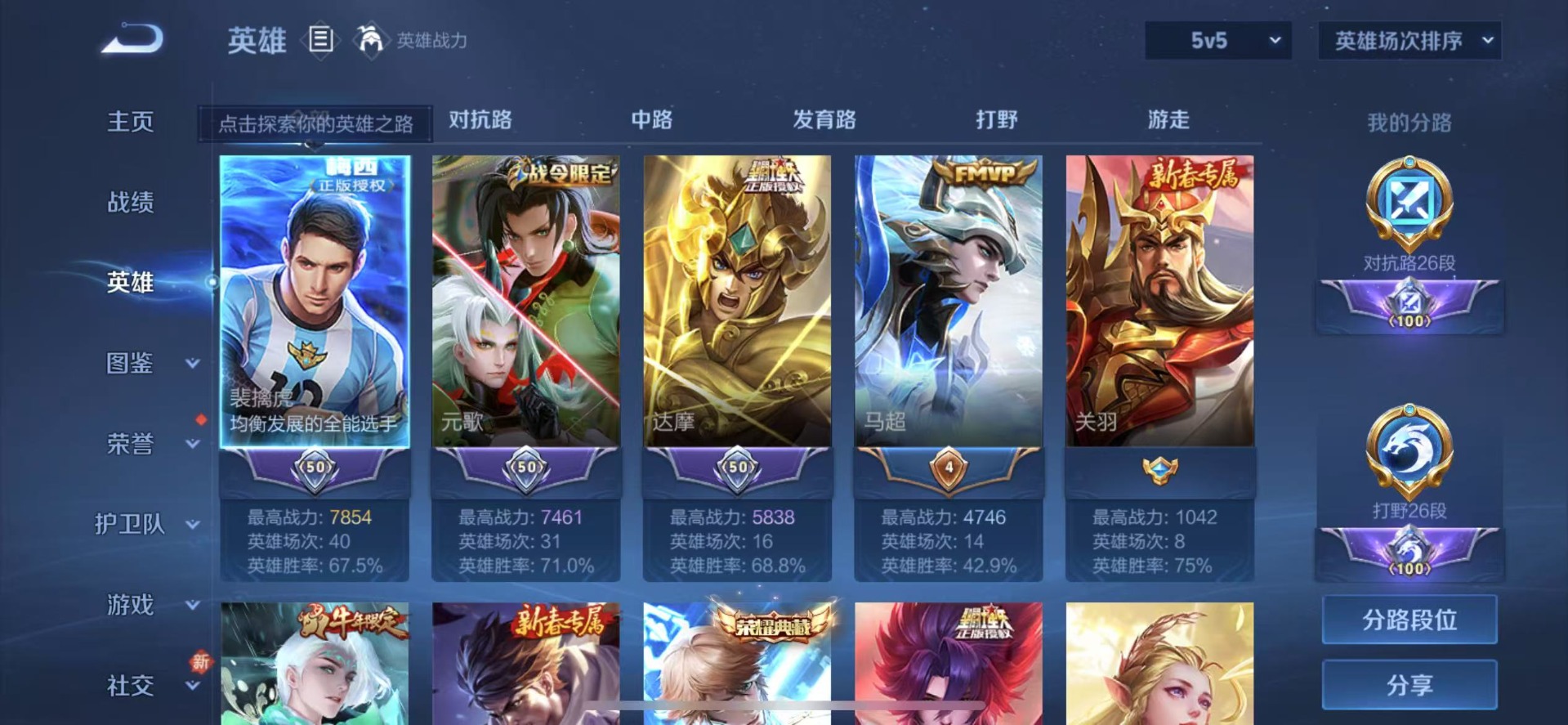- PX_2093861-贵族等级: V4 英雄数: 53 皮肤数: 17 传说皮: 澜逐花归海 限定皮: 逐霄战戟