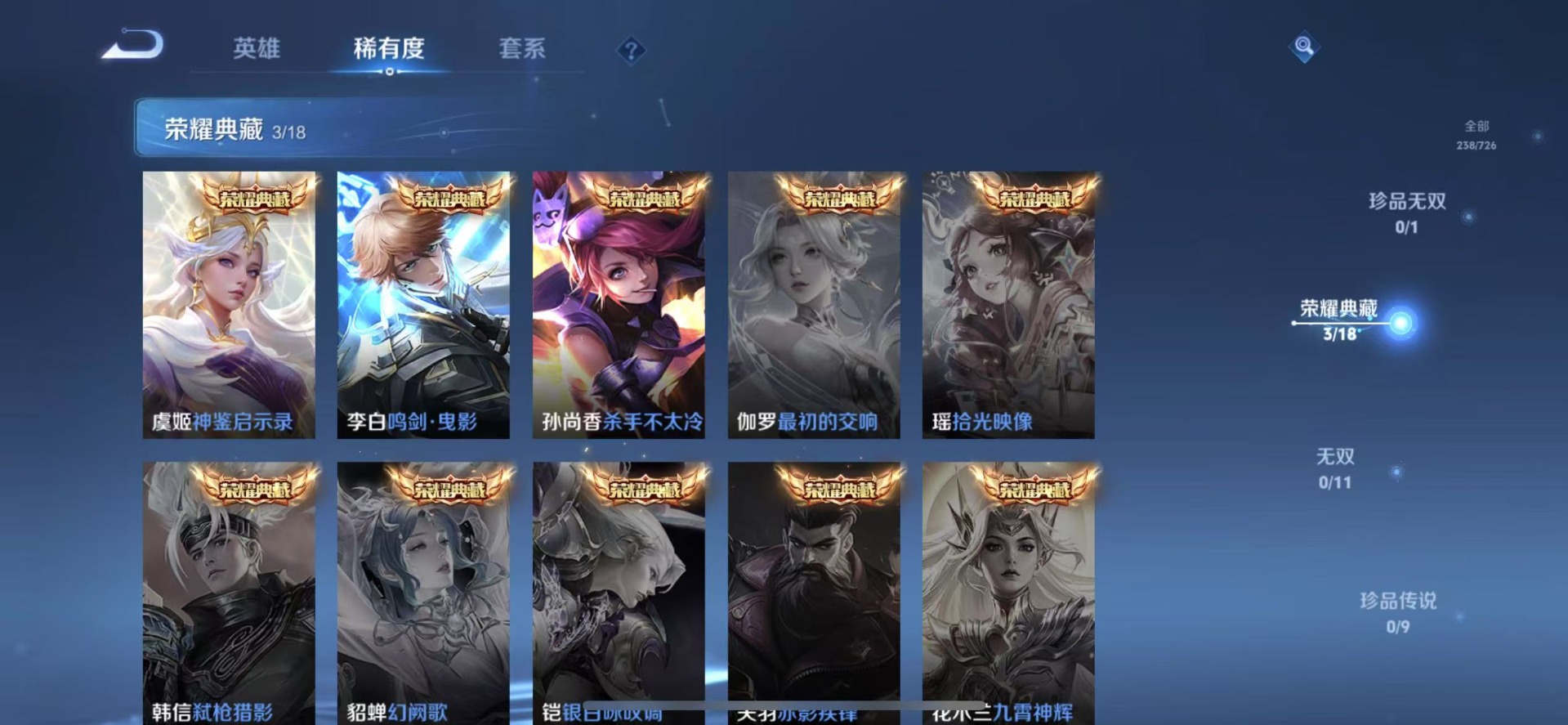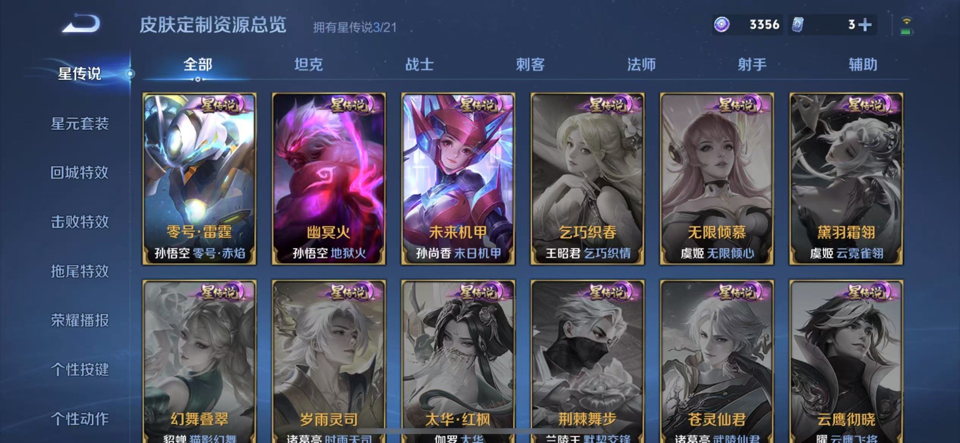 铠冥王哈迪斯,赵云淬星耀世,李信一念神魔,孙尚香音你闪耀,达摩黄金狮子座,孙悟空零号·赤焰,马超无双飞将,澜逐花归海,虞姬云霓雀翎