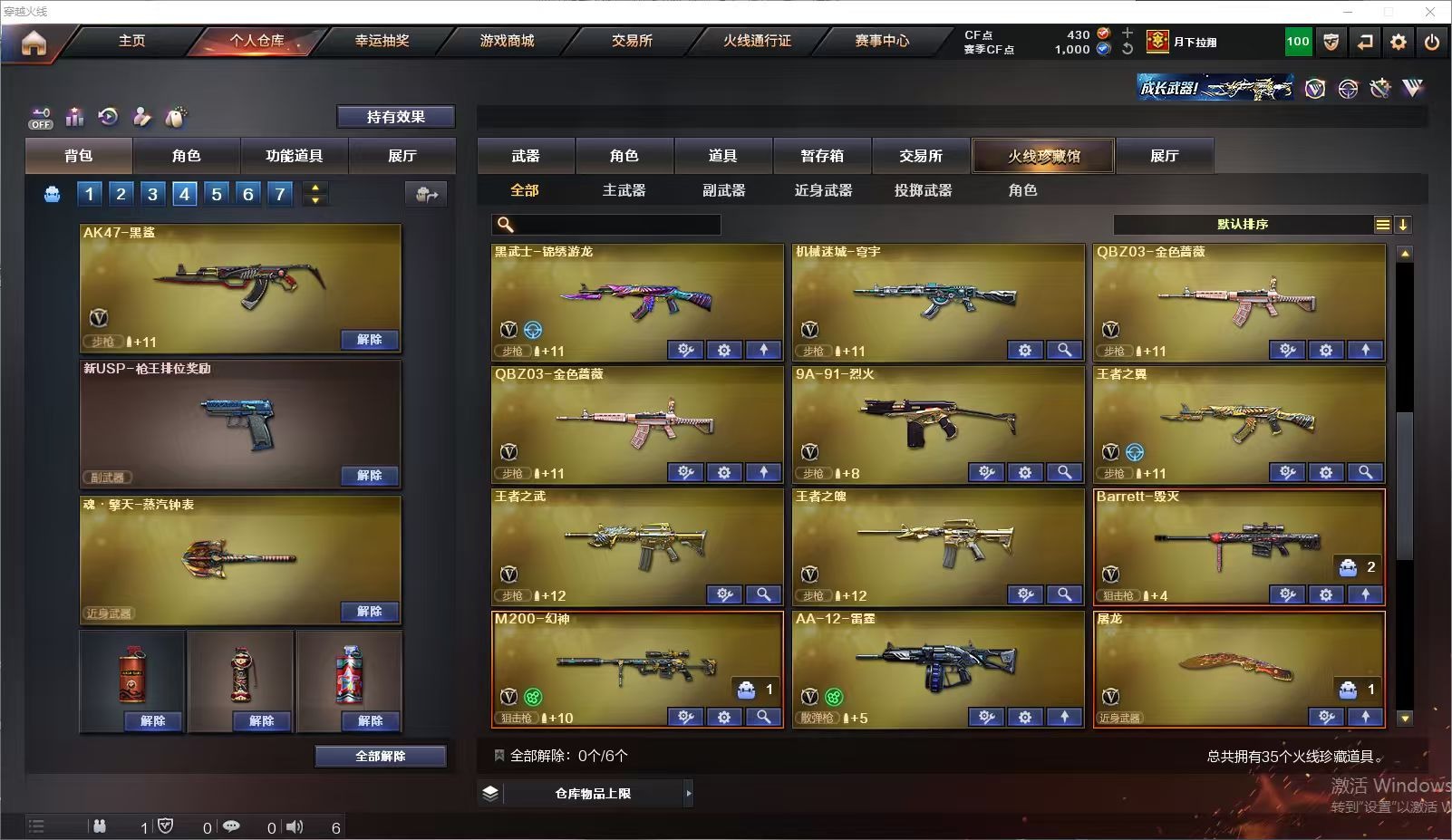 [11605380]1传说角色 3王者武器 2炫金武器 34V武器 可二次 可修改实名 优质装备:M200-幻神,QBZ03-金色蔷薇,AK47-火麒麟,AK47-机械迷城,M4A1-雷神,M4A1-黑骑士,M4A1-死神,M4A1-黑龙,M4A1-青龙,Barrett-毁灭,AA-12-雷霆,AK12-天启,HK417-朱雀,9A91-烈火,擎天,炽芒蝶刃,龙啸-烈火龙威,AK47-黑武士-锦绣游龙,无影-神兵利器,机械迷城-穹宇 排位资格:有 V武器:AK47-黑鲨 王者武器:王者之武-觉醒版,王者之翼-觉醒版,王者之魄-觉醒版,王者冰魄 炫金武器:炫金黑骑士