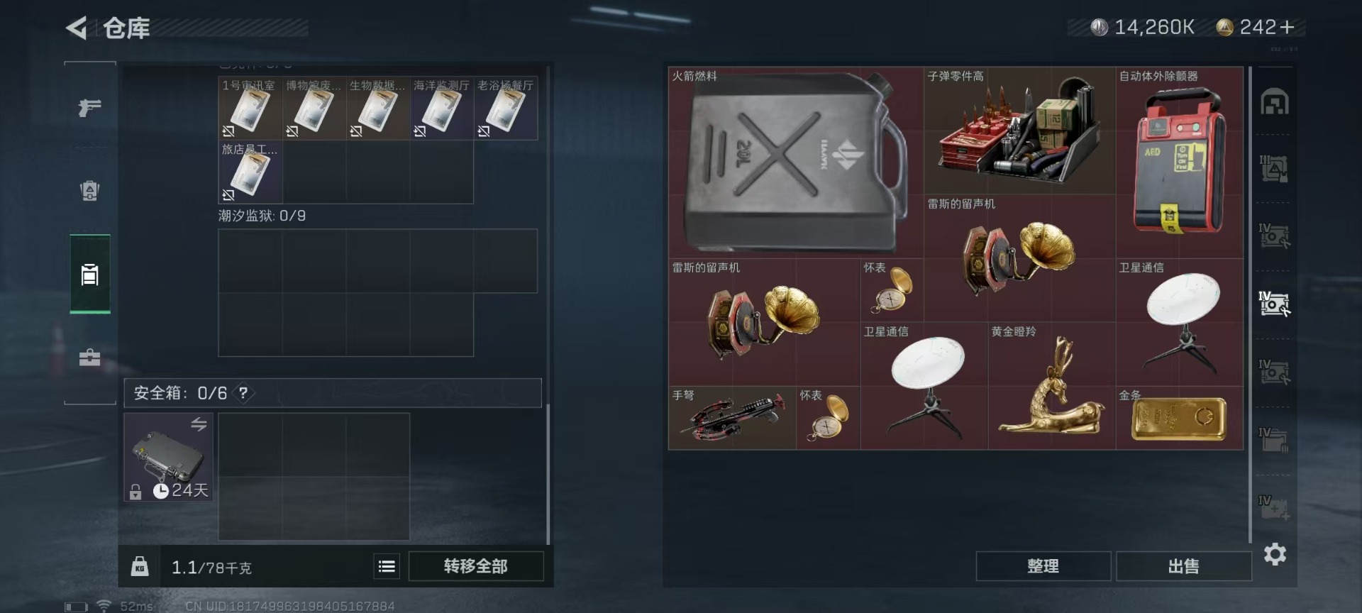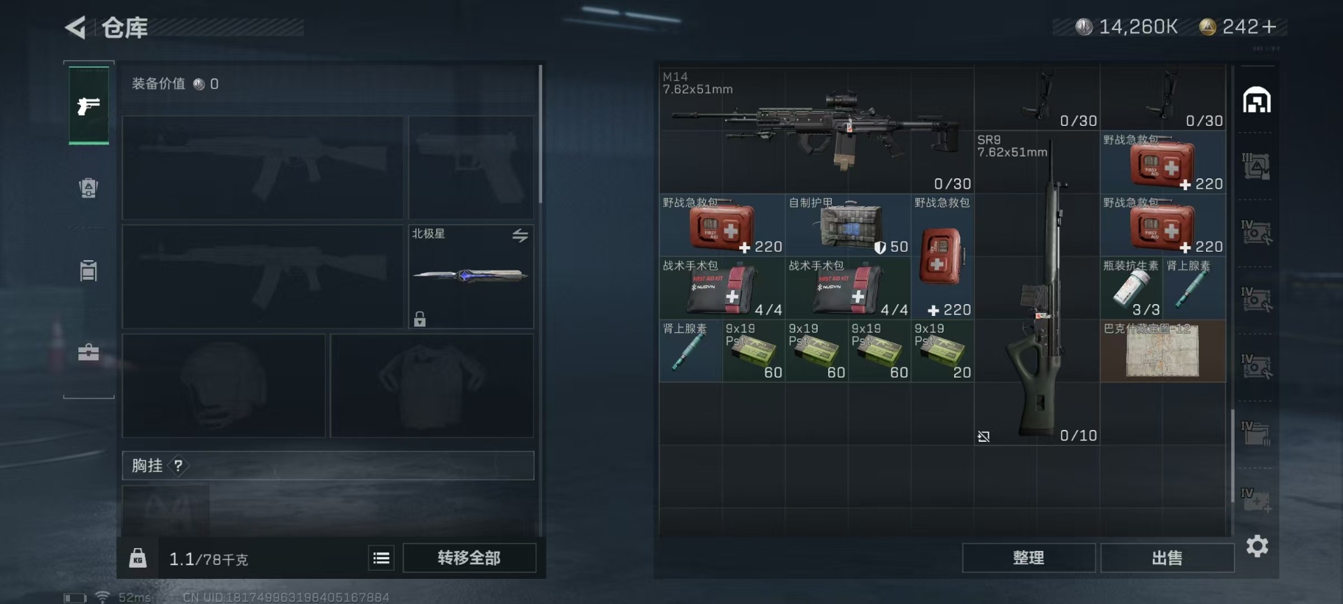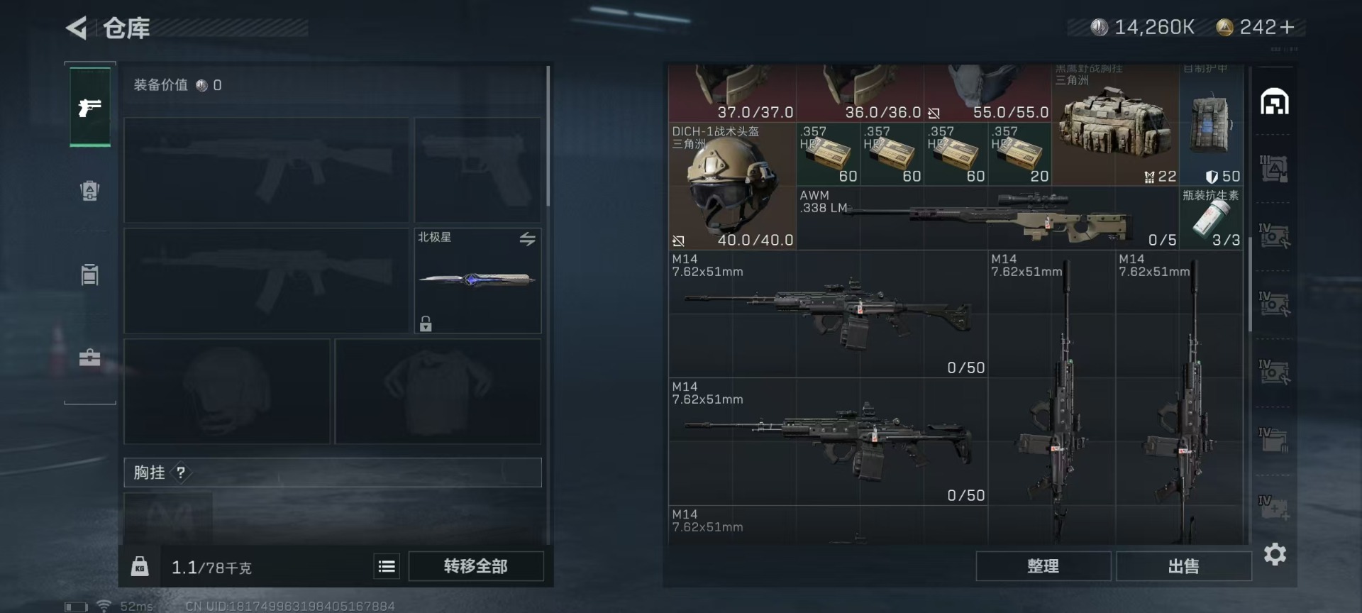 [11605423]总资产:112.2M 2近战传说 9传说枪械 哈夫币:14.260K 高级安全箱(2×3)9.15号到期 可二次 可修改实名 优质装备:近战-黑海,近战-北极星 烽火地带段位:黑鹰 全面战场段位:无段位 传说武器皮肤:SMG45冲锋枪-骑士,CAR-15突击步枪-阿米娅,勇士冲锋枪-能天使-午夜邮差,MP5冲锋枪-黑海,QJB201轻机枪-黑海,M4A1突击步枪-蚀金玫瑰,CAR-15突击步枪-黑鹰坠落 史诗武器皮肤:Ash-12战斗步枪-守夜人,M16A4突击步枪-竞赛选手,AS Val突击步枪-尖端治疗,AKM突击步枪-林中猎手,SR-3M紧凑突击步枪-荒野求生,PTR-32突击步枪-英雄,AS Val突击步枪-典狱官