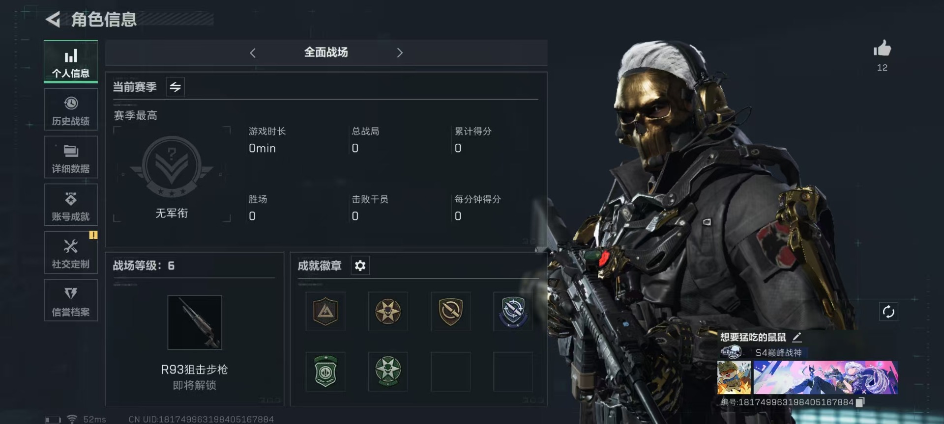 - [11605735]总资产:51.7M 2干员外观 6传说枪械 哈夫币:829.446K 可二次 可修改实名 烽火地带段位:黄金 全面战场段位:列兵 传说武器皮肤:SR-25射手步枪-水墨云图,SCAR-H战斗步枪-水墨云图,AS Val突击步枪-蛇年祥瑞,SCAR-H战斗步枪-铁艺苍穹,SMG45冲锋枪-骑士,M7战斗步枪-维京 史诗武器皮肤:SMG-45冲锋枪-飓风行动,SR-3M紧凑突击步枪-英雄,QBZ95-1突击步枪-ACE,AUG突击步枪-特勤执行,Vector冲锋枪-红色彗星,SKS射手步枪-ACE,AUG突击步枪-蝮蛇,M700狙击步枪-蝮蛇,G3战斗步枪-战场英杰,AKM突击步枪-林中猎手,M1014霰弹枪-林中猎手,M249轻机枪-维京,SCAR-H战斗步枪-危险实验,沙漠之鹰-曙光,Vector冲锋枪-阿萨拉文明,SVD狙击步枪-阿萨拉工艺,S12K霰弹枪-曙光,QSZ92G-风林火山,93R-博士,AUG突击步枪-战术迷彩 干员外观:牧羊人-街头之王,骇爪-水墨云图