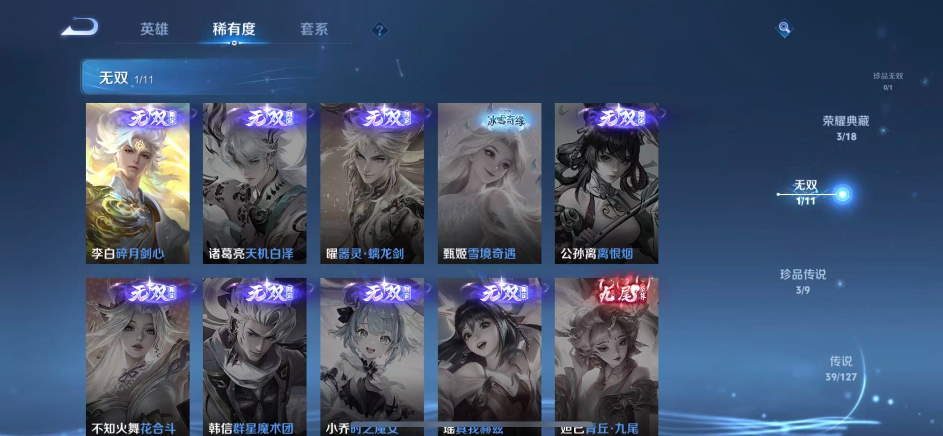 - [11851131]V10 8典藏 4无双 46传说 126英雄 503皮肤 典藏英雄武则天 可修改实名 女号 优质装备:天鹅之梦(小乔典藏),倪克斯神谕(宇宙婆娘),大秦宣太后,全息碎影(猴子典藏),星域神启(倪克斯贼亮),九霄神辉(木兰典藏),幻阙歌(貂蝉典藏),真我赫兹(瑶)(瑶无双),青丘·九尾(妲己无双),碎月剑心(李白无双),离恨烟(公孙离无双),拾光映像(瑶典藏),冠军飞将,云鹰飞将(小将军),绛天战甲(鸡嘴战神),黄金白羊座,猫影幻舞,久胜战神,炽阳神光,一念神魔,云霓雀翎,末日机甲-孙尚香(绿蚂蚱),仲夏夜之梦(大飞蛾),音你心动-小乔,地狱之眼,飞鸢探春,音你心动-周瑜,胖达荣荣,时之恋人-刘备(电焊工),游龙清影(小青龙),花朝如约(花篮子),挚爱花嫁,碎云,天秀幻梦,画中仙,记忆之芯(机甲兔),青丘·九尾,电玩·雷克斯,灼幽烈阳,妄想实况,遇见神鼓,鲁班七号-时之奇旅,大乔-时之奇旅,永恒水手月亮,夜礼服假面,艾琳觅芳踪,涂山容容 传说皮:幻光神枪 珍宝阁皮:妄想食味,女武神,玩趣恶龙 限定皮:映山客,陌上桑,鸣野蒿,至尊宝,凤凰于飞,太华(伽罗年限),武陵仙君(小桃花),异界灵契(白毛香),傲雪梅枪,寅虎·展翼(孙膑年限),星穹之声,绯月行,时之彼端,白鹤梁神女,魔法小厨娘,时雨天司(水龙头),飞衡(韩信年限),山海·碧波行(瑶年限),至美·乘鲤谣,至美·化雀舞,影龙天霄,遇见飞天,高山流水,匿光决锋者,五谷丰年,幽恒(沐浴露),游园惊梦,梁祝,天狼狩猎者,逐梦之星,天狼溯光者,逐梦之音,天狼绘梦者,李小龙,朱雀志(守约年限),如梦令-嫦娥,如梦令-后羿,霸王别姬-虞姬,奇迹圣诞,真爱至上,纯白花嫁,孙行者,一生所爱,青春决赛季,蜜橘之夏,热情桑巴,匿光追影者,女儿国国王,寅虎·瑞焰(虎皮蛋子),寅虎·心曲(虎婆),时之祈愿-瑶(瑶传限),玉兔公主,匿光启智者,时之奇旅-妲己 史诗皮:赞萌露比,鸭鸭历险记-刘禅,化蝶舞,灵蛊蚀心,星界战将,谪仙醉月,龙之律动,石田雨龙,百相守梦-周瑜,茶境仙,幻珠鲛人,炽弈燎原,撼地雄心,破空之剑,战舞者,涂山红红,东方月初,蔬乡物语(鲁班七号),乘龙·聚宝船(安琪拉年限),乘龙·忆丹青(大乔年限),百相守梦-百里守约,百相守梦-黄忠,织梦人,遇见神鹿,紫霞仙子,苍穹之光,电玩小子(小书包),白龙吟,黄金分割率,