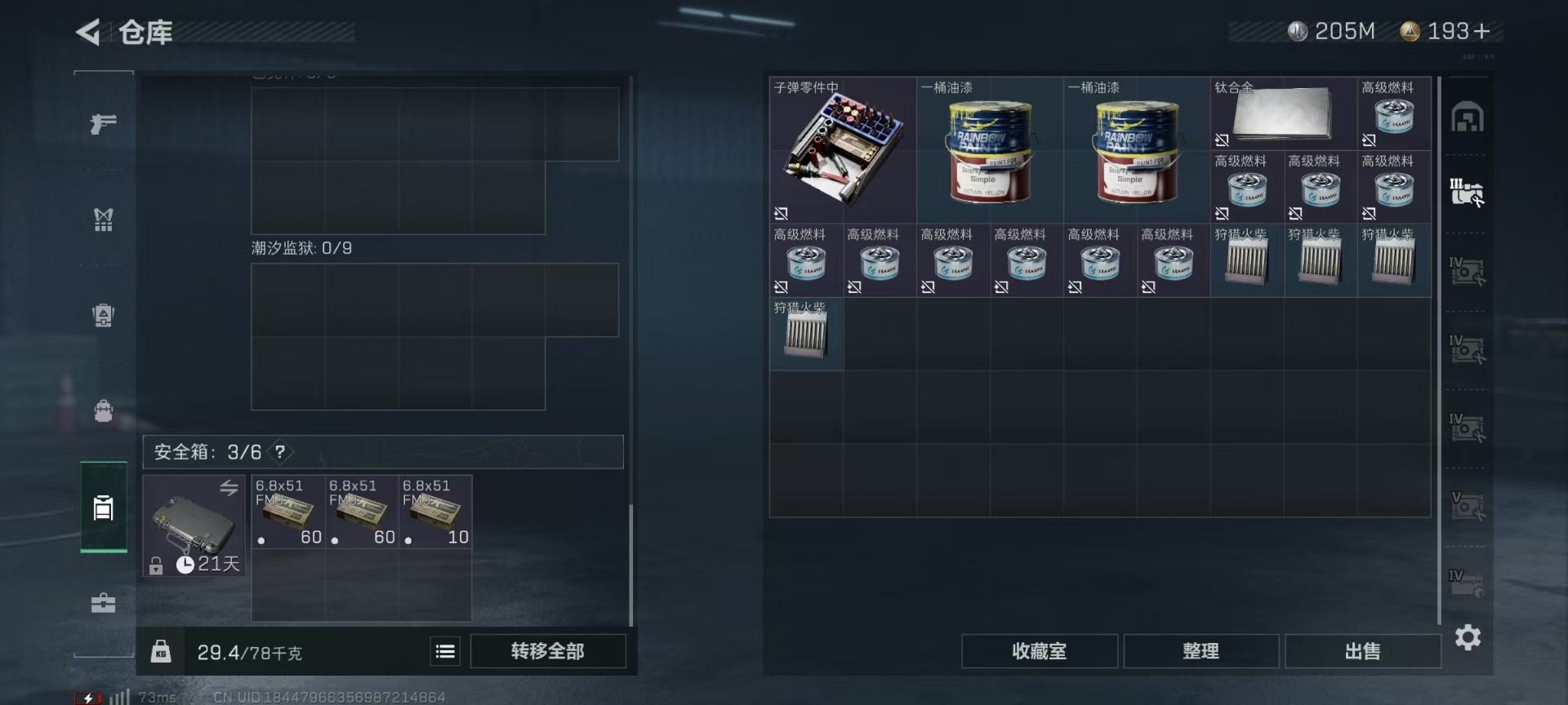 [11605498]总资产:337.8M 1干员外观 1传说枪械 哈夫币:205K 高级安全箱(2×3)9.15号到期 可二次 可修改实名 烽火地带段位:青铜 全面战场段位:无段位 传说武器皮肤:M4A1突击步枪-阿米娅 干员外观:露娜-黑·天际线
