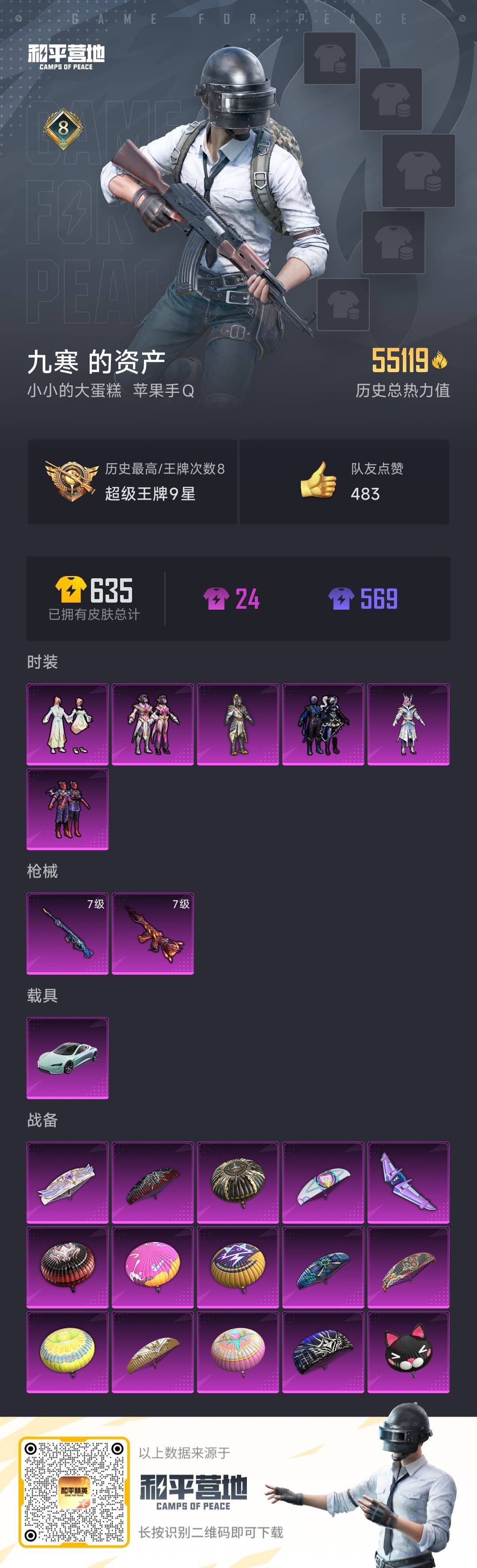 - [11632550]4粉装 7特效枪 2载具 9印记 可二次 可修改实名 女号 身法装备:Mark.06(新蓝螳螂) 优质装备:宝马X6 M(曼岛绿),AKM绿萝繁花,M416电玩时刻,时空协奏·心弦,GROZA-镜光银凌,SVD-月影灵韵,七级SVD-月影灵韵,樱桃泡泡,MK14-甜梦熊击,幻彩电音,Kar98K-巳巳如意 热门装扮:金丰海韵,迅捷狂鲨 稀有枪皮:DP-28-豹影疾电 五级特效枪:五级GROZA-镜光银凌,五级Kar98K-巳巳如意,五级DP-28-豹影疾电,五级MK14-甜梦熊击,五级M416-电玩时刻,五级AKM-绿萝繁花 紫色装扮:SS31特训套装,六六大吉,冷焰舞者,千禧之恋,霓虹热舞,SS30特训套装,云朵鹅,彩虹兔,雪绒豹,SS33特训套装,顶瓜瓜,时希公主,豚鼠丹丹,竞技角斗士,吉莉礼服,SS17特训,酒红色名流,野性山猫,长空猛禽,霓虹街区,青年教官,缤纷果语,蓝色运动,魅力单车,龙的传人,龟仙人,冰河战士,龙魂突击队,蝶变,香桃花海,格斗先锋,暗黑骑手,幻影武者,完美偶像,帅气教官,绮丽涂鸦,生化防暴队,空岛之星,竞技达人朋克,王牌教练,燃烧卡路里,特殊使命,特训学院,小熊娃娃,雏菊兔兔,萝兰蝴蝶,SS29特训,星途旅人,SS28特训,铁血战翼,Mark.06(新蓝螳螂),异域银装,鱼渊荷华,燕燕于飞,巳巳如意,森林游猎者,海琴烟,青团波波,糖糖葫芦,棉花软糖,竞技名士,街头风暴,怀庆长公主,银尘,惊鸿侠骨,SS25特训,锦衣飞扬,SS27特训,华灯初上,SS26特训,晶辉守护,大橘大利,星渊小夜曲,粉恋花,蓝冰羽,紫幽梦,SS32特训服(SS32特训套装),猎影月神,绯格组合,闪电轻猫,糖霜甜心,恋语绒绒,冰冻风暴,旷野奇兵,光之冒险,奇趣企鹅 优质战备:星梦奇缘降落伞,霓虹漫游降落伞,星途旅人降落伞,未来领航者降落伞,莲影清波降落伞,绝色倾城飞行器,蜜语绒猫降落伞,繁龙极客降落伞,幻彩电音降落伞,冷漠罗丽降落伞,飞天猪飞行器,荧海星豚降落伞,智趣喵喵降落伞,鬼刀降落伞,牡丹亭·游园飞行器,智耀战神降落伞,雪月幻音降落伞,桃粉嫣然降落伞,樱桃泡泡降落伞