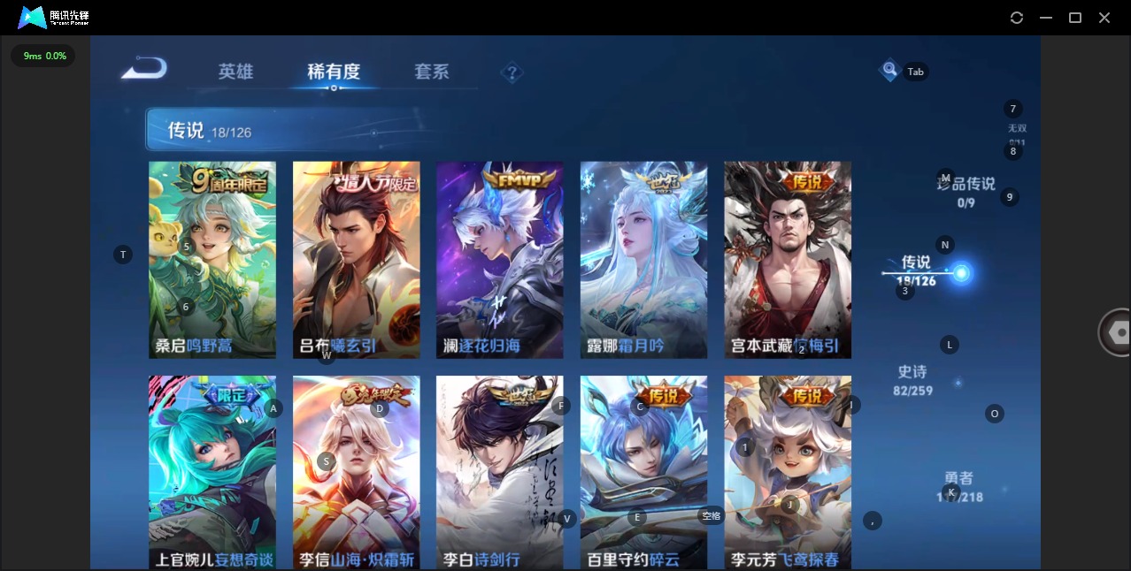 - [11864042]V7 1无双 11传说 76英雄 88皮肤 可修改实名 女号 优质装备:真我赫兹(瑶)(瑶无双),千山共赴 传说皮:云诺千山,续相思,星之鸣奏 限定皮:愿照·福禄聚(蔡文姬年限),愿照·岁时盈(虞姬年限),愿照·众生和(妲己年限),愿照·千秋盛(女娲年限),映山客,鸣野蒿,绯月行,至美·乘鲤谣,山海·玄木吟(马可年限) 史诗皮:器灵·浮梦炉,化蝶舞,百相守梦-周瑜,茶境仙,紫霞仙子,特工魅影,魅语,冰冠公主,银翎春语,时之恋人-孙尚香,心灵骇客,幽灵船长,鬼剑武藏,缤纷独角兽,鹰眼统帅,魅力维加斯,滕王阁序