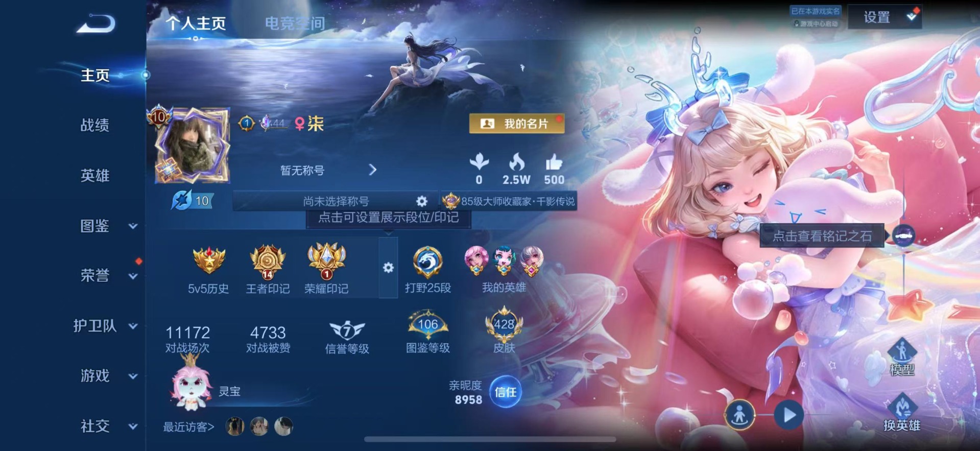 - PX_2066969-实名: 可修改 贵族等级: V7 英雄数: 123 皮肤数: 171 荣耀水晶: 弑枪猎影 传说皮: 黄金射手座,一念神魔,末日机甲-孙尚香,仲夏夜之梦,地狱之眼,乘龙·问璇玑,朵莉亚心动手记 限定皮: 遇见飞天,李小龙,至尊宝,高山流水,孙行者,时之祈愿-云中君,诗剑行,鸣野蒿
