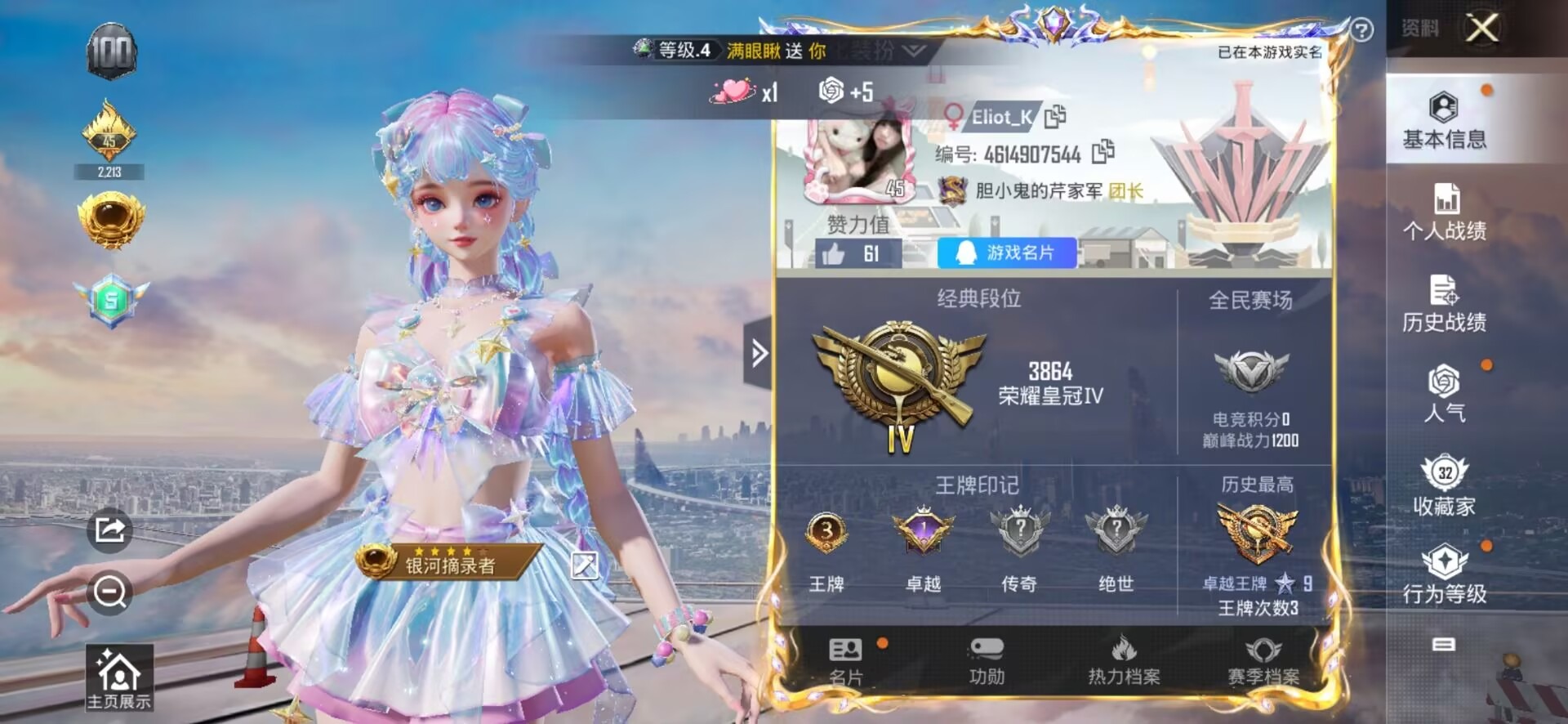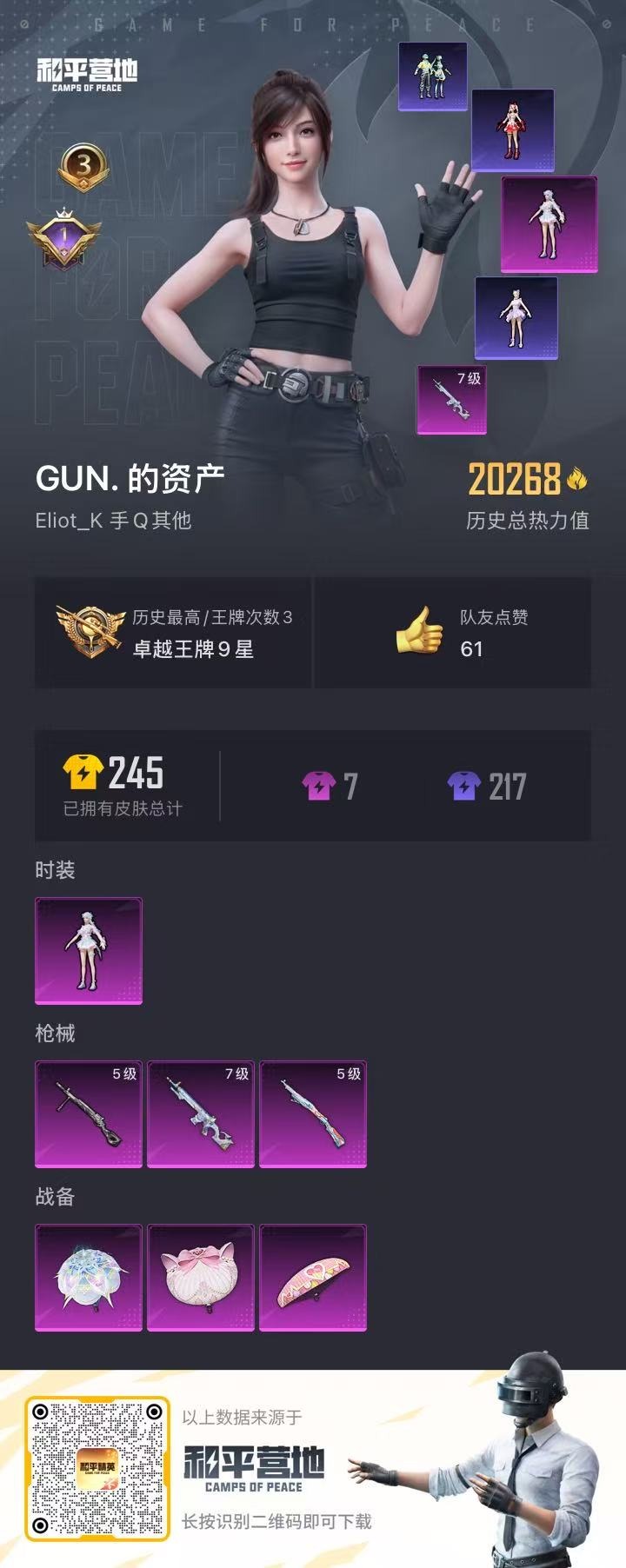 - PX_2106739- 苹果手Q-4王牌印记-有战神框-5粉装-8特效枪-3载具-30722热力值-56套装-80枪皮-1卓越印记-1传奇印记 【5粉装】,梦幻火箭,萨利娅,星梦奇缘,绚金战神,呆萌星弥 【8特效枪】AKM-魔法神域-3级 SCAR-L-甜梦小狐-4级 M416-电玩时刻-5级 M416-超新星-6级 M762-青锋波束-5级 Kar98K-巳巳如意-5级 M24-魔法神域-4级