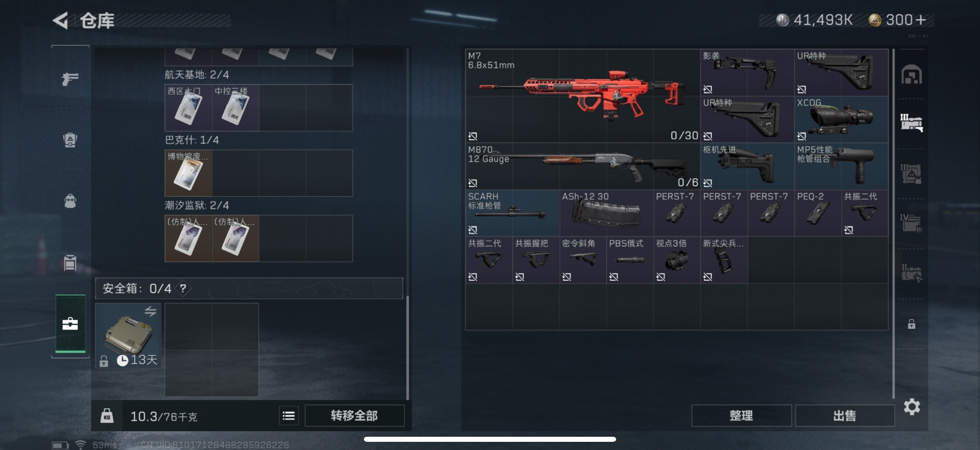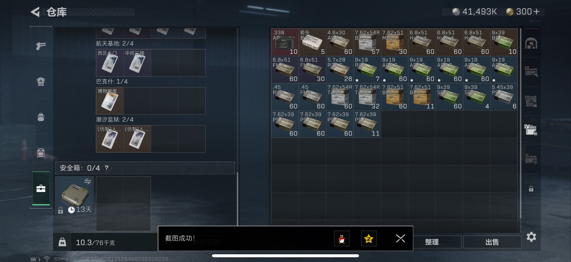 [11606103]总资产:76.3M 9传说枪械 哈夫币:41.493K 进阶安全箱(2×2)9.15号到期 可二次 可修改实名 烽火地带段位:铂金 全面战场段位:上等兵 传说武器皮肤:SMG45冲锋枪-骑士,UZI冲锋枪-特斯拉线圈,M16A4突击步枪-狩猎时刻,AK-12突击步枪-特斯拉线圈,SR-3M紧凑突击步枪-特斯拉线圈,勇士冲锋枪-能天使-午夜邮差,Vector冲锋枪-狩猎时刻,G3战斗步枪-狩猎时刻,复合弓-黑-天际线 史诗武器皮肤:AUG突击步枪-蝮蛇,G3战斗步枪-战场英杰,M16A4突击步枪-竞赛选手,M1014霰弹枪-林中猎手,AKM突击步枪-林中猎手,SV-98狙击步枪-林中猎手,M250通用机枪-囚徒,SV-98狙击步枪-囚徒,K416突击步枪-竞技风,Vector冲锋枪-阿萨拉文明,S12K霰弹枪-曙光,AS Val突击步枪-刀锋,PKM通用机枪-英雄