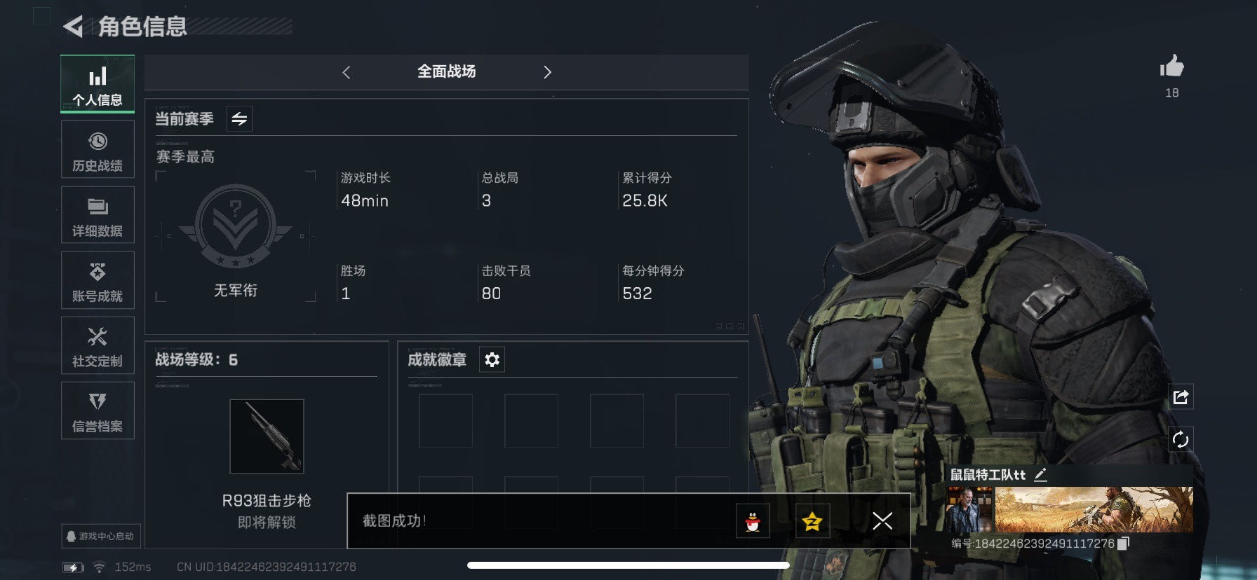 [11606255]总资产:96.5M 10传说枪械 哈夫币:58.188K 进阶安全箱(9.17到期) 可二次 可修改实名 烽火地带段位:青铜 全面战场段位:无段位 传说武器皮肤:M16A4突击步枪-狩猎时刻,M4A1突击步枪-阿米娅,CAR-15突击步枪-阿米娅,复合弓-黑-天际线,Vector冲锋枪-狩猎时刻,G3战斗步枪-狩猎时刻,AK-12突击步枪-特斯拉线圈,SR-3M紧凑突击步枪-特斯拉线圈,UZI冲锋枪-特斯拉线圈,勇士冲锋枪-能天使-午夜邮差 史诗武器皮肤:SV-98狙击步枪-林中猎手
