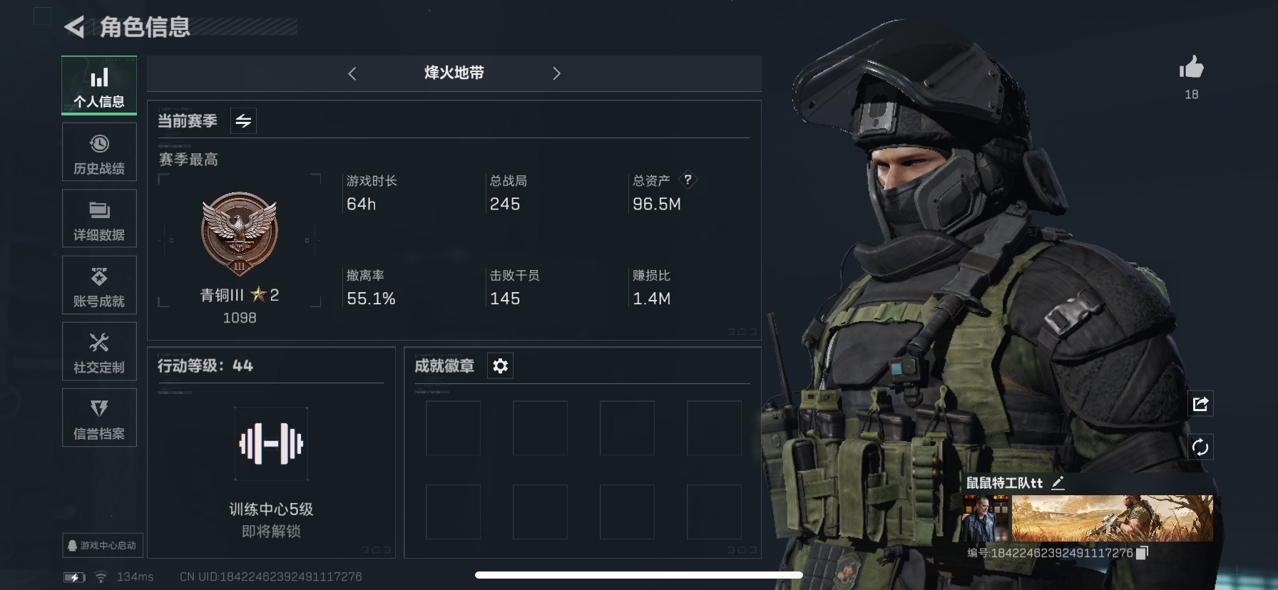 - [11521356]总资产:149.9M 2干员外观 1近战传说 13传说枪械 哈夫币:4.225K 可二次 可修改实名 账号被追缴 不可充值 优质装备:近战-影锋 烽火地带段位:钻石 全面战场段位:上等兵 传说武器皮肤:SR-25射手步枪-水墨云图,AS Val突击步枪-蛇年祥瑞,M1014霰弹枪-影锋,AWM狙击步枪-影锋,SCAR-H战斗步枪-铁艺苍穹,SMG45冲锋枪-骑士,AKM突击步枪-黎明警戒,复合弓-黑-天际线,AK-12突击步枪-夜鹰,M7战斗步枪-维京,M4A1突击步枪-蚀金玫瑰,CAR-15突击步枪-黑鹰坠落 干员外观:红狼-蚀金玫瑰,露娜-黑·天际线