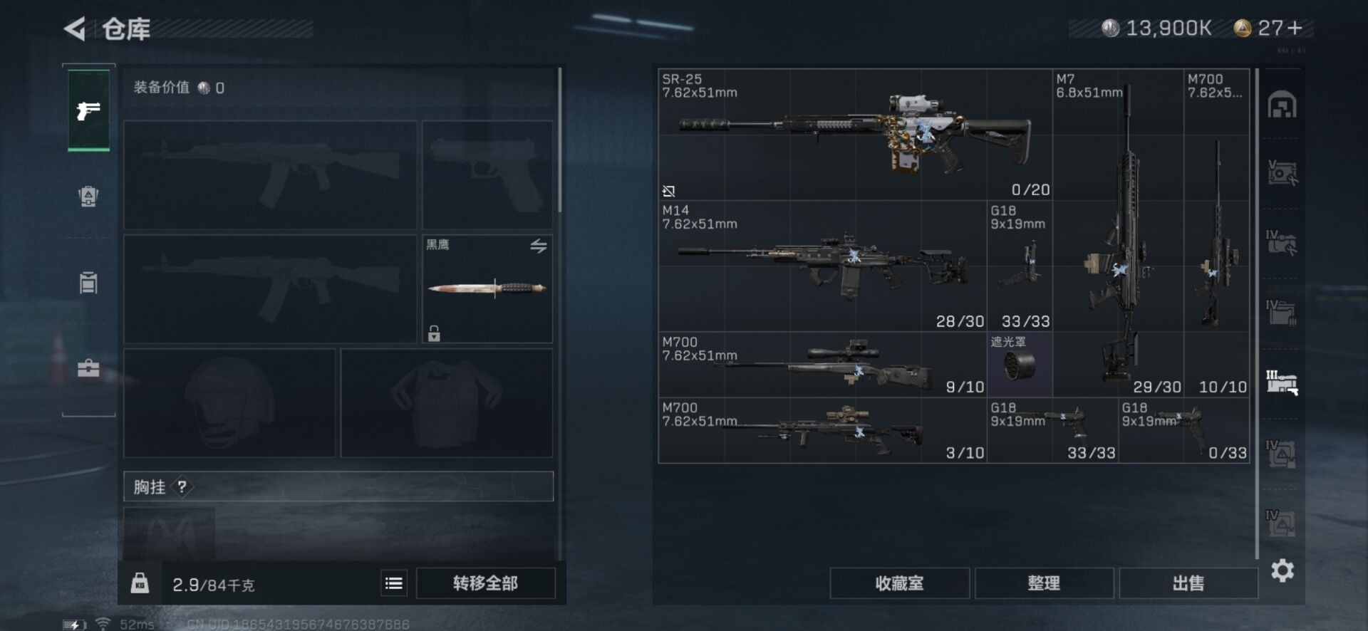 [11606371]总资产:230.9M 15传说枪械 哈夫币:13.900K 高级安全箱(9.17到期) 可二次 可修改实名 优质装备:SCAR-H战斗步枪-电玩高手 烽火地带段位:三角洲巅峰 全面战场段位:上等兵 传说武器皮肤:AS Val突击步枪-蛇年祥瑞,SR-25射手步枪-水墨云图,SCAR-H战斗步枪-铁艺苍穹,AK-12突击步枪-夜鹰,SMG45冲锋枪-骑士,M4A1突击步枪-阿米娅,CAR-15突击步枪-阿米娅,复合弓-黑-天际线,AWM狙击步枪-捞点薯条,腾龙突击步枪-捞点薯条,93R-捞点薯条,AK-12突击步枪-特斯拉线圈,SR-3M紧凑突击步枪-特斯拉线圈,UZI冲锋枪-特斯拉线圈 史诗武器皮肤:SR-3M紧凑突击步枪-英雄,QBZ95-1突击步枪-ACE,M4A1突击步枪-特勤执行,AUG突击步枪-特勤执行,Vector冲锋枪-红色彗星,PTR-32战斗步枪-ACE,SKS射手步枪-ACE,AUG突击步枪-蝮蛇,PKM通用机枪-蝮蛇,SR-25射手步枪-战场英杰,G3战斗步枪-战场英杰,Ash-12战斗步枪-守夜人,M16A4突击步枪-竞赛选手,PKM通用机枪-守夜人,M700狙击步枪-守夜人,SG552突击步枪-尖端治疗,SR-25射手步枪-尖端治疗,PKM通用机枪-荒野求生,勇士冲锋枪-深海恐惧,AKM突击步枪-林中猎手,SR-3M紧凑突击步枪-荒野求生,M1014霰弹枪-林中猎手,SV-98狙击步枪-林中猎手,SVD狙击步枪-荒野求生,SV-98狙击步枪-囚徒,SCAR-H战斗步枪-囚徒,腾龙突击步枪-无垢,PSG-1射手步枪-无垢,QBZ95-1突击步枪-曙光,沙漠之鹰-曙光,Vector冲锋枪-阿萨拉文明,PKM通用机枪-英雄
