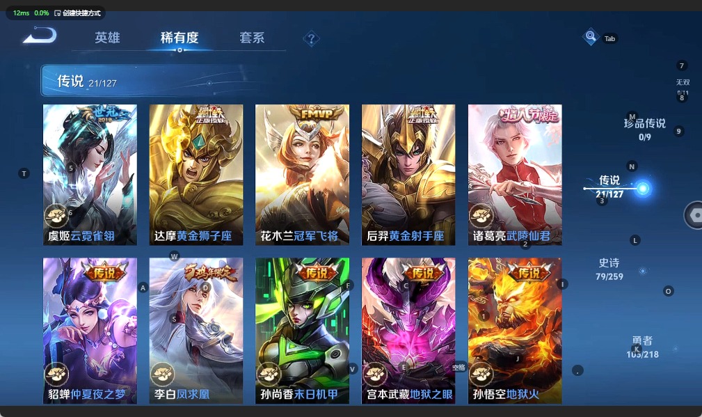 - [10836254]V10 6典藏 3无双 2珍品传说 54传说 126英雄 463皮肤 典藏英雄武则天 可修改实名 荣耀水晶:神鉴启示录,弑枪猎影(韩信典藏),银白咏叹调(倪克斯侍卫),幻阙歌(貂蝉典藏),无限飓风号(高达),倪克斯神谕(宇宙婆娘) 无双皮:小乔时之魔女(小乔无双),真我赫兹(瑶)(瑶无双),青丘·九尾(妲己无双) 珍品传说:酷洛米之心,大耳狗之梦 传说皮:李逍遥,游龙清影(小青龙),永恒水手月亮,大乔-时之奇旅,黄金射手座,黄金白羊座,零号·赤焰,地狱火,仲夏夜之梦(大飞蛾),地狱之眼,末日机甲-孙尚香(绿蚂蚱),云霓雀翎,一念神魔,冠军飞将,久胜战神,猫影幻舞,云鹰飞将(小将军),炽阳神光,音你心动-小乔,音你心动-周瑜,胖达荣荣,时之恋人-刘备(电焊工),绛天战甲(鸡嘴战神),花朝如约(花篮子),燃星之曲,浮生妄,青丘·九尾,百相守梦(张飞),追逃游戏(安琪拉),追逃游戏(亚瑟),电玩·雷克斯,鹤羽星尊,灼幽烈阳,妄想实况,妄想奇谈,鹤归松栖(云缨),遇见神鼓,鲁班七号-时之奇旅,夜礼服假面,艾琳觅芳踪 珍宝阁皮:胡桃夹子,蔷薇恋人 限定皮:愿照·福禄聚(蔡文姬年限),鸣野蒿,至尊宝,白虎志(电光耗子),凤求凰(白切鸡),凤凰于飞,太华(伽罗年限),武陵仙君(小桃花),时之彼端,魔法小厨娘,白晶晶,时雨天司(水龙头),神威(电光马子),飞衡(韩信年限),玄嵩(庄周年限),瑞麟志(木兰年限),至美·乘鲤谣,至美·化雀舞,影龙天霄,遇见飞天,五谷丰年,青龙志(铠年限),冰锋战神,幽恒(沐浴露),武圣,天狼运算者,游园惊梦,梁祝,御风骁将(吕布年限),天狼狩猎者,龙胆,逐梦之星,烈魂,岱宗(典韦年限),天狼溯光者,虎魄,逐梦之音,奔雷神使(牛魔年限),祈雪灵祝(雪兔子),天狼绘梦者,李小龙,逐梦之光,玄武志(苏烈年限),朱雀志(守约年限),如梦令-嫦娥,如梦令-后羿,奇迹圣诞,大圣娶亲,天魔缭乱,冰霜恋舞曲,云端筑梦师,乒乒小将,蜜橘之夏,神奇女侠,时之祈愿-瑶(瑶传限),深海之息(深海大菠萝),神器·万象笔 史诗皮:星界战将,化蝶舞,鸭鸭历险记-刘禅,灵蛊蚀心,龙之律动,藏狐·褐绒,石田雨龙,蔬乡物语(鲁班七号),遇见神鹿,紫霞仙子,苍穹之光,电玩小子(小书包),白龙吟,黄金分割率,特工魅影,千年之狐,电玩·爆裂旋风,百相守梦(关羽),百相守梦(刘备),匿光破解者,