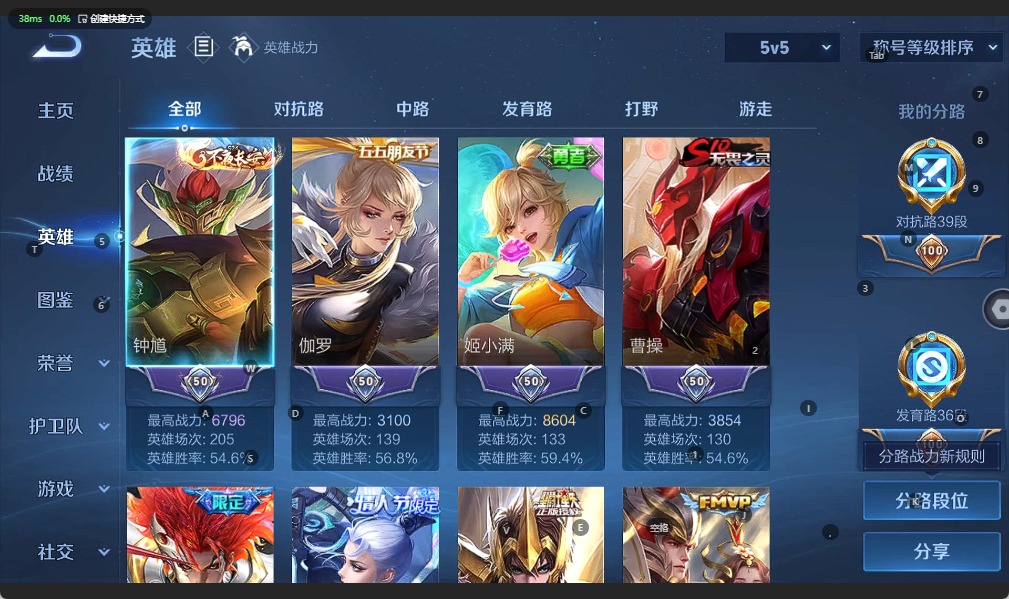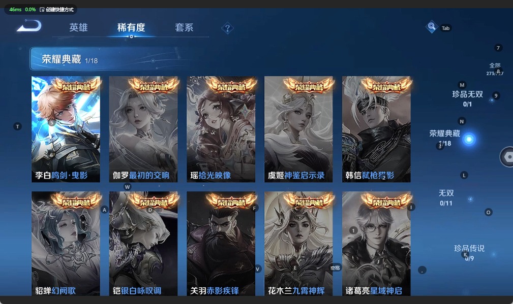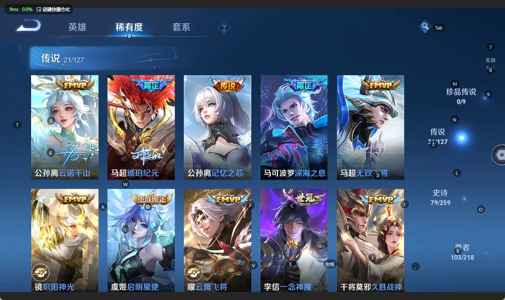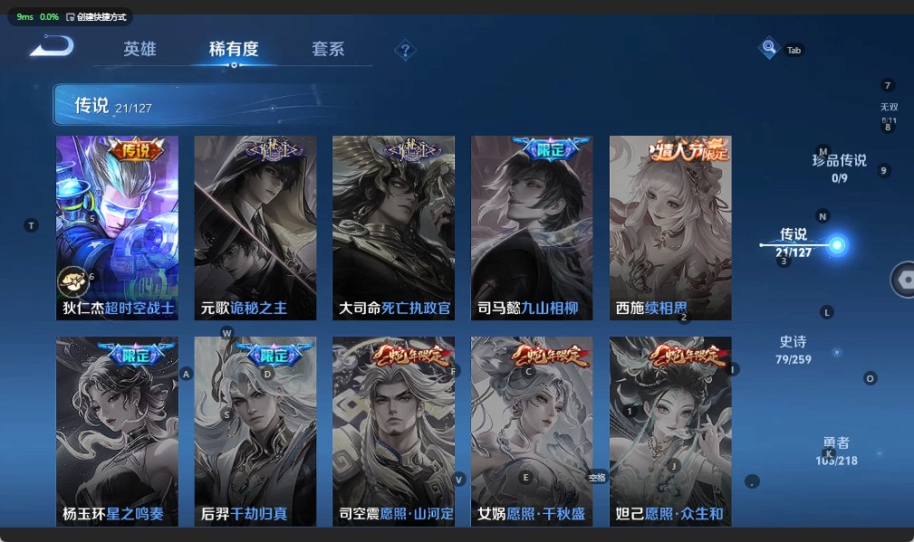 - [12026096]V8 1典藏 19传说 124英雄 298皮肤 可修改实名 优质装备:鸣剑·曳影,黄金狮子座,云鹰飞将(小将军),久胜战神,炽阳神光,一念神魔,末日机甲-孙尚香(绿蚂蚱),地狱火,地狱之眼,无双飞将,燃星之曲,遇见神鼓 传说皮:落雪白狼,幻光神枪 珍宝阁皮:女武神,玩趣恶龙 限定皮:愿照·九州拓(澜年限),愿照·岁时盈(虞姬年限),愿照·众生和(妲己年限),凤求凰(白切鸡),傲雪梅枪,时之彼端,白晶晶,遇见飞天,高山流水,齐天大圣,五谷丰年,梁祝,天狼绘梦者,李小龙,辉光之辰,霸王别姬-虞姬,圣诞老人,真爱至上,纯白花嫁,大圣娶亲,寅虎·御盾(廉颇年限) 史诗皮:鸭鸭历险记-刘禅,苍鳞隐世,器灵·浮梦炉,糖绘人间,化蝶舞,星界战将,龙之律动,藏狐·褐绒,百相守梦-黄忠,紫霞仙子,白龙吟,黄金分割率,特工魅影,千年之狐,永昼,江河有灵,偶像歌手,暗夜猫娘,晚萤,冰冠公主,猫狗日记-孙策,猫狗日记-大乔,乱世虎臣,修罗,女仆咖啡,摇滚巨星,水果甜心,天才门将,星夜王子,心灵骇客,功夫厨神,德古拉伯爵,暗隐猎兽者,幽灵船长,鬼剑武藏,心灵战警,天秀·启明,地狱岩魂,纤云弄巧,繁星吟游(呼啦呼啦),缤纷独角兽,乘风破浪,水晶猎龙者,曙光守护者,箭羽风息,金属风暴,原初追逐者,圣诞狂欢,圣诞恋歌,鹰眼统帅,王者之锤,暗夜贵公子,魅力维加斯,黎明之约,寅虎·御盾,无心,未来纪元-赵云