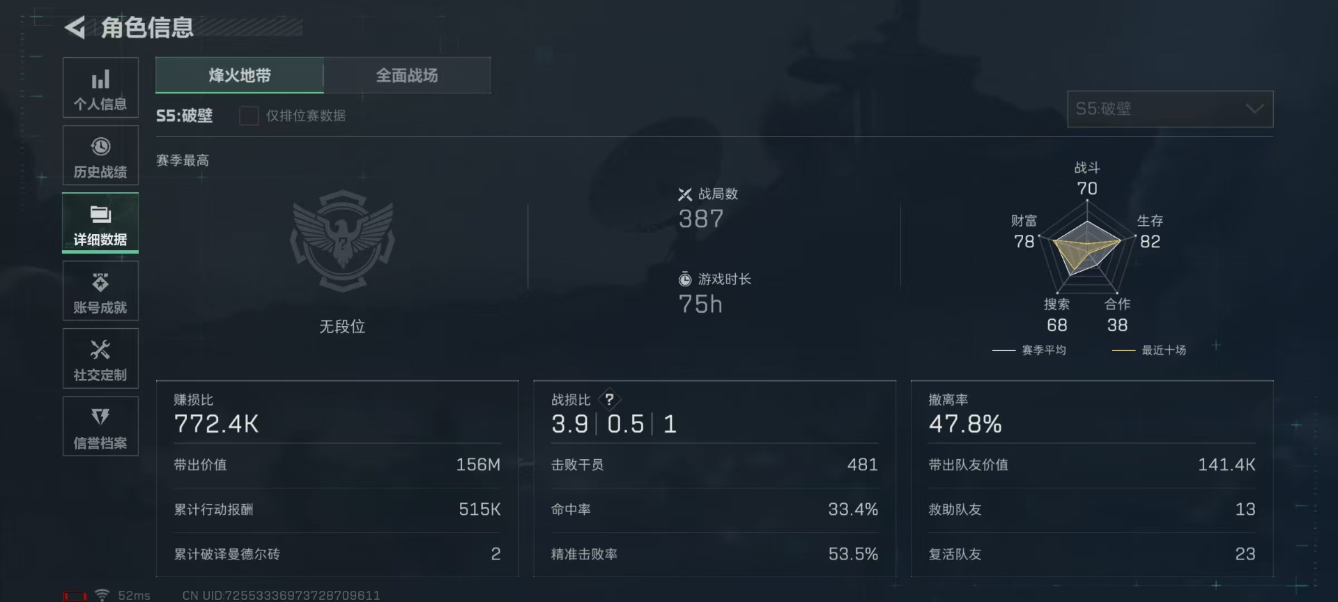- [11608293]总资产:137.1M 1干员外观 10传说枪械 哈夫币:3.108K 进阶安全箱(2×2)9.15号到期 可二次 可修改实名 烽火地带段位:钻石 全面战场段位:无段位 传说武器皮肤:93R-捞点薯条,AWM狙击步枪-捞点薯条,腾龙突击步枪-捞点薯条,AK-12突击步枪-特斯拉线圈,CAR-15突击步枪-阿米娅,SR-3M紧凑突击步枪-特斯拉线圈,UZI冲锋枪-特斯拉线圈,勇士冲锋枪-能天使-午夜邮差,复合弓-黑-天际线,M4A1突击步枪-阿米娅 史诗武器皮肤:M700狙击步枪-蝮蛇,M16A4突击步枪-竞赛选手,SV-98狙击步枪-林中猎手,QBZ95-1突击步枪-曙光,M700狙击步枪-竞技风 干员外观:露娜-黑·天际线