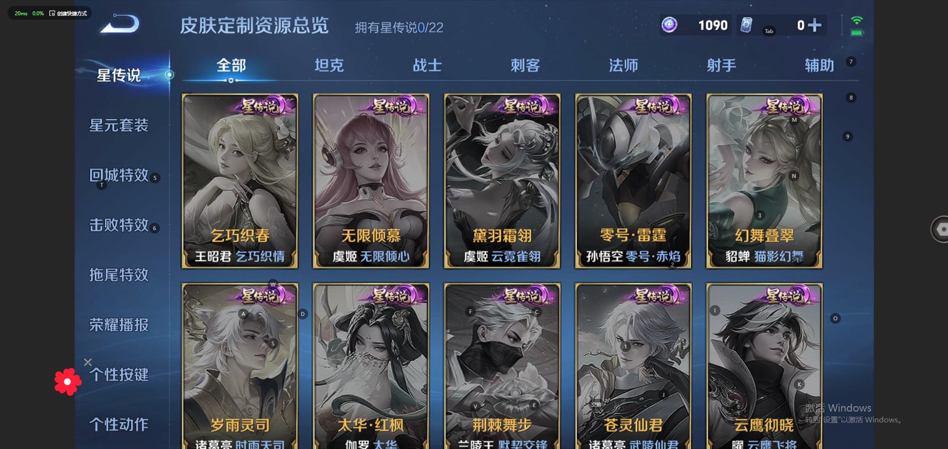刘邦德古拉伯爵,阿轲节奏热浪,花木兰水晶猎龙者,李白千年之狐,曹操幽灵船长,百里守约特工魅影,露娜紫霞仙子,吕布末日机甲,诸葛亮黄金分割率