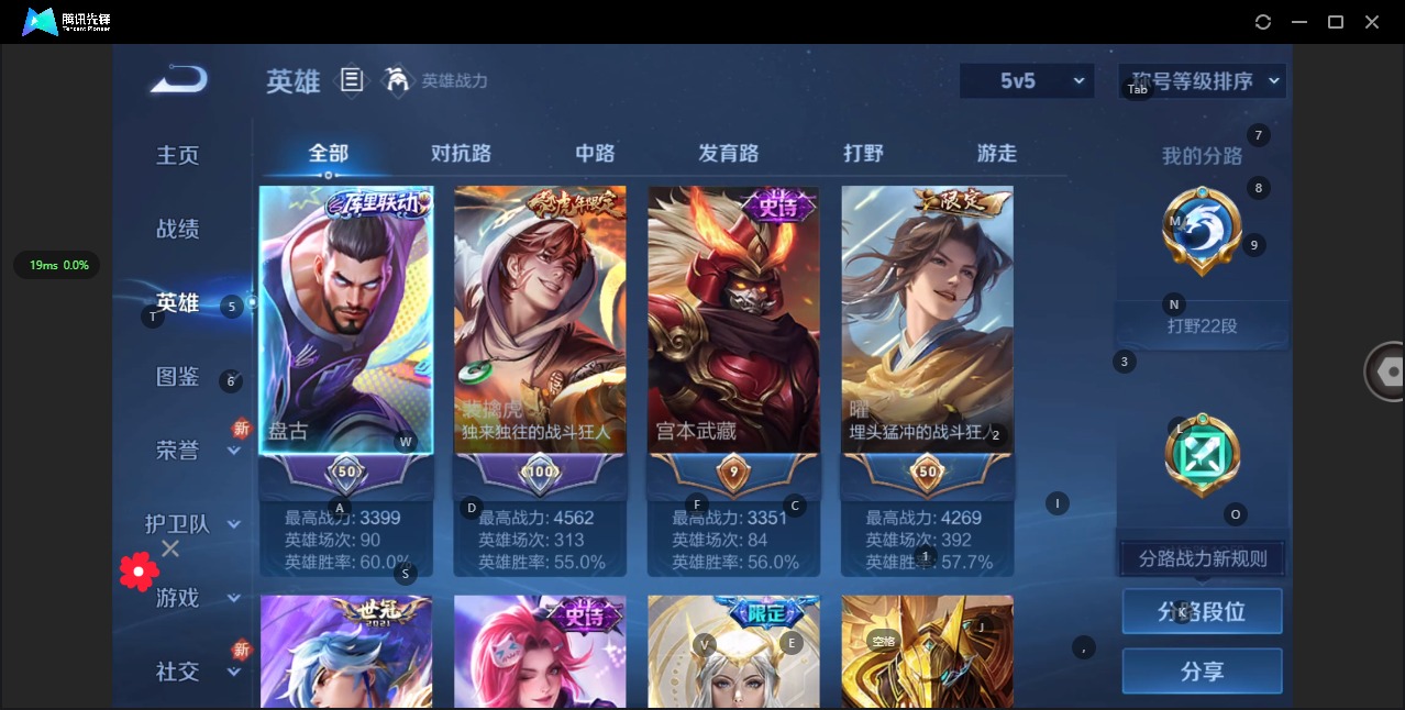 - [12196117]V9 1典藏 1珍品传说 23传说 124英雄 266皮肤 可修改实名 优质装备:鸣剑·曳影,怪盗基德,绛天战甲(鸡嘴战神),炽阳神光,一念神魔,零号·赤焰,李逍遥,时之恋人-刘备(电焊工),超时空战士-狄仁杰,挚爱之约,无双飞将,澜逐花归海 传说皮:落雪白狼,幻光神枪 珍宝阁皮:妄想食味,蔷薇恋人,女武神 限定皮:愿照·九州拓(澜年限),鸣野蒿,白虎志(电光耗子),武陵仙君(小桃花),傲雪梅枪,寅虎·展翼(孙膑年限),白晶晶,时雨天司(水龙头),神威(电光马子),高山流水,诗剑行,五谷丰年,游园惊梦,梁祝,祈雪灵祝(雪兔子),李小龙,朱雀志(守约年限),默契交锋-兰陵王,冰霜恋舞曲,寅虎·心曲(虎婆),寅虎·赤拳(老虎年限),时之祈愿-云中君,时之祈愿-瑶(瑶传限),百木心枪,山海·玄木吟(马可年限) 史诗皮:器灵·浮梦炉,星界战将,谪仙醉月,破空之剑,蒙犽顽岩魄,百相守梦-黄忠,紫霞仙子,特工魅影,千年之狐,江河有灵,高渐离燃音魔法,蒙恬荣光圣徽,冰冠公主,电玩·爆裂旋风,百相守梦(刘备),暗夜猫娘,龙骑士(小龙虾),末日机甲-吕布,猫狗日记-大乔,乱世虎臣,女仆咖啡,摇滚巨星,水果甜心,绅士熊喵,天才门将,星夜王子,心灵骇客,功夫厨神,德古拉伯爵,暗隐猎兽者,幽灵船长,鬼剑武藏,心灵战警,天秀·启明,地狱岩魂,诗语江南,纤云弄巧,拒霜思,缤纷独角兽,乘风破浪,逐浪之夏,月团寄思,水晶猎龙者,曙光守护者,热力回旋,金属风暴,原初追逐者,圣诞恋歌,鹰眼统帅,魅力维加斯,黎明之约,赏金猎手